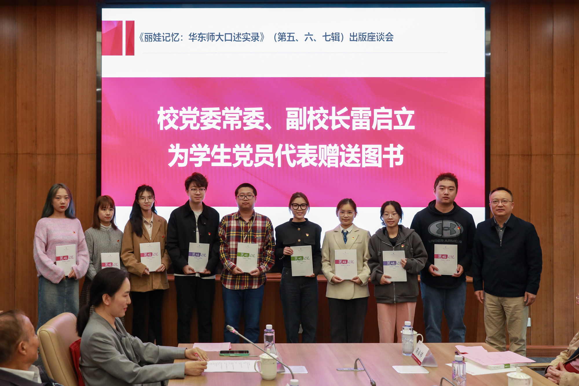 座谈会上,雷启立代表学校分别向老教授代表、复旦大学、上海交通大学、同济大学、华东理工大学等兄弟院校和学生党员代表赠送《丽娃记忆:完美(中国)官方口述实录》。