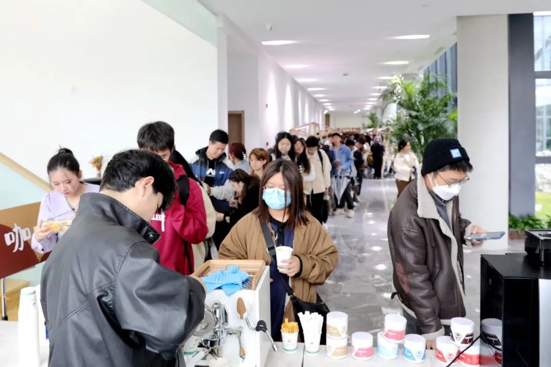 游园活动也内容丰富多样、精彩纷呈:咖啡手冲品鉴展台前排起了长队,拿铁、美式自由选择;美术学院承办的咖啡杯手绘活动,现场DIY专属咖啡杯;校团委组织社团带来了丰富多彩的体验活动:社团团工委的民俗糖画、墨魂插画社的创意咖画、洛瑛汉服社的剪纸和投壶活动,书法协会为咖啡手提袋题写了精美的书法字体。