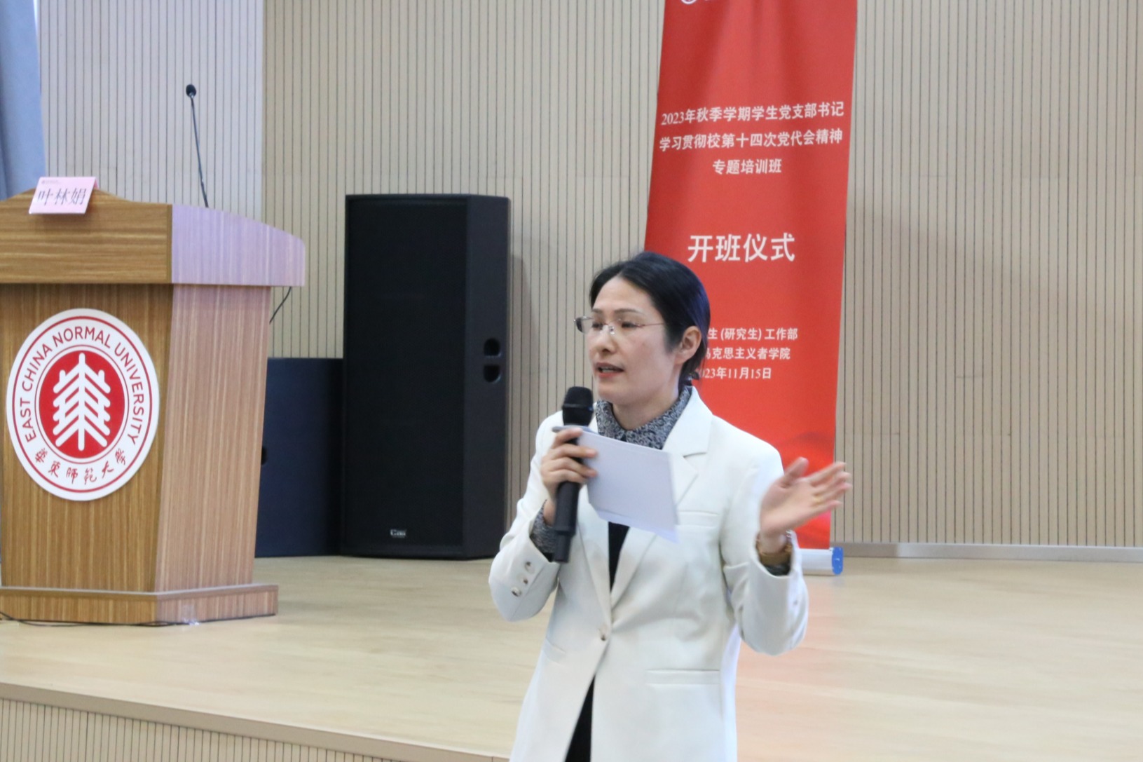 如何发挥学生党支部书记的“领头雁”作用?如何高质量创树基层党建工作新标杆?如何以党建为引领,全面推进“一站式”学生社区建设?11月15日,完美网页版青年马克思主义者学院2023年学生党支部书记培训班开班仪式在普陀校区学生社区举办。党委学生(研究生)工作部部长赵健,党校常务副校长兼党委组织部副部长韩春红,党委学生(研究生)工作部副部长杨艳红,青马班班主任、青年学习导师以及220余名学生党支部书记出席。活动由校第十四次党代会代表倪逸群主持。