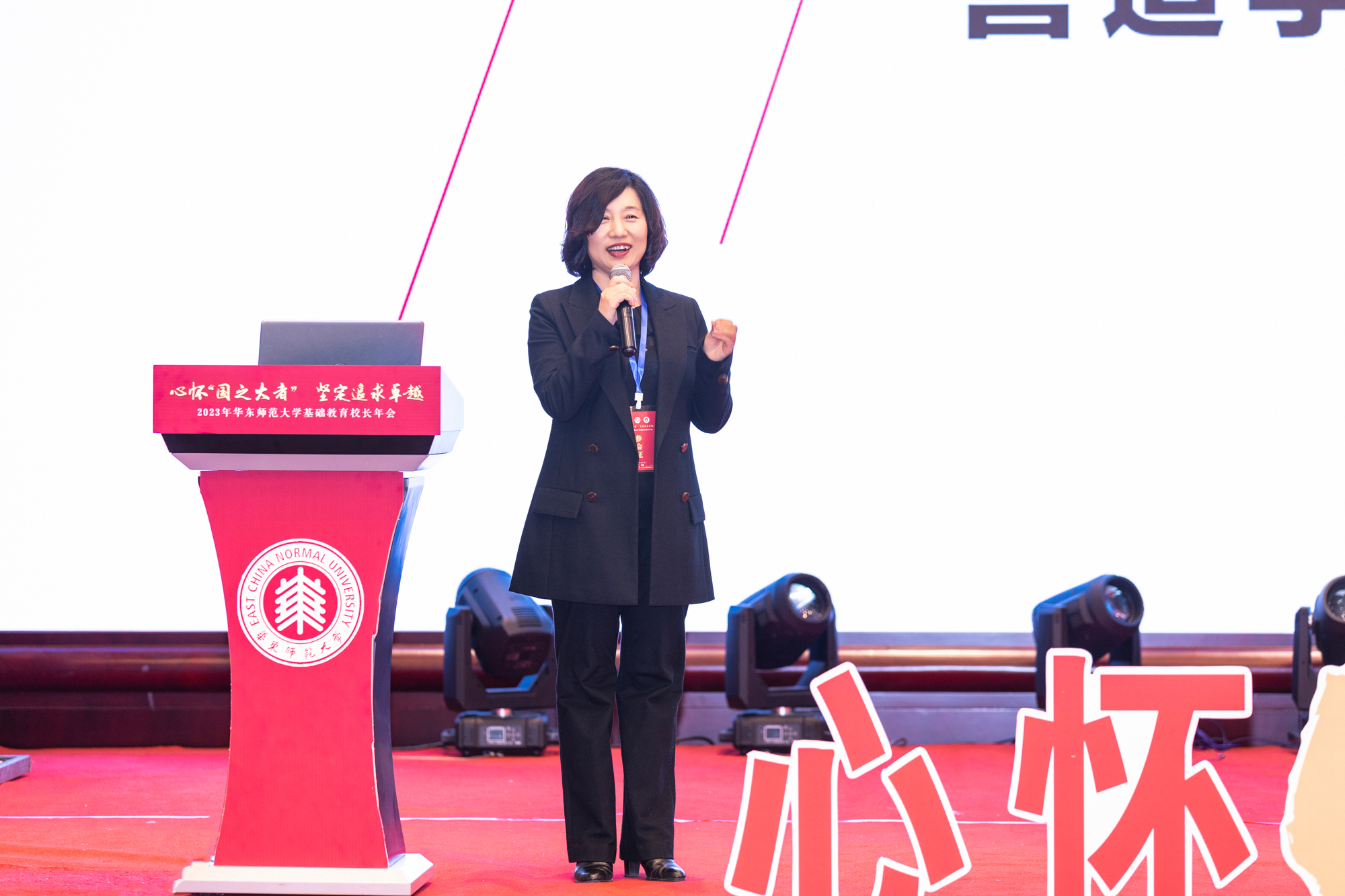 最后,教育部中学校长培训中心副主任刘莉莉代表教育集团,以“坚守中突破,用专业智慧专业实践回应时代挑战”为题对会议进行全面总结,她以“量子纠缠”的概念导出“集团凝聚力”,指出集团校在面对政策还未完全到位、生源不尽如意、教师年轻化、社区环境配合度欠佳的诸多挑战时,要正视当下的困境,不抱怨,要做主动的思考者和生产者,发挥反向性思维和跨界思维,积极有效整合资源、创新办学机制、提升数字赋能、梳理凝练办学故事、强化知识的生产和创造,在祖国的大地上,努力写好基于素质、基于管理、基于治理、基于教师成长、基于卓越育人的“完美(中国)官方人”答卷,并呼吁所有集团校用智慧、创新思考和专业实践来共同诠释“强国有我”的时代担当。