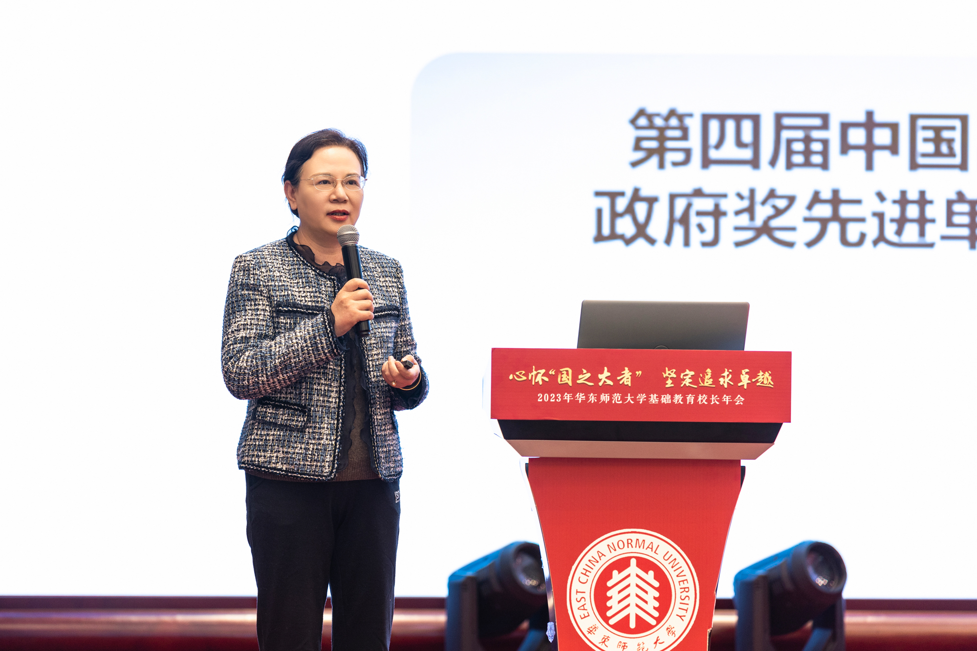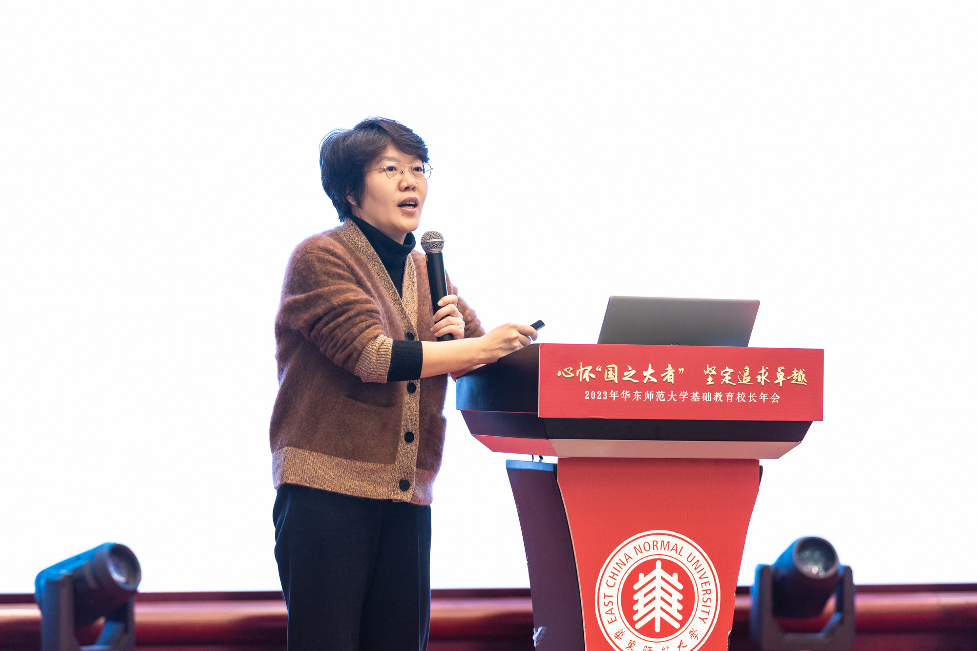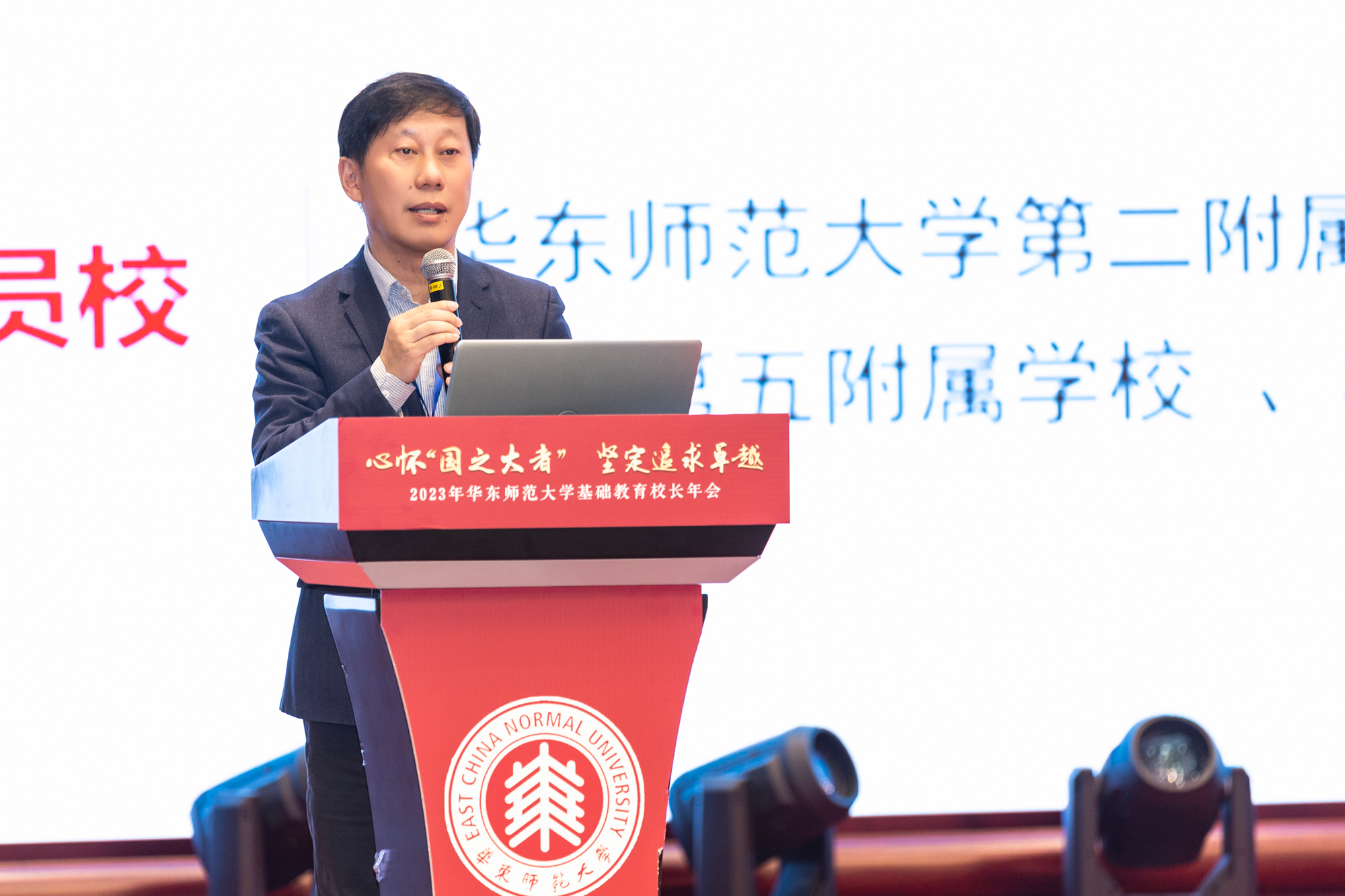 基础教育与终身教育发展部部长李志聪,通报了2023年度教育集团工作进展:学科教研联盟继续提质扩容、卓越领导力培养工程持续发力、教师招聘助力高质量办学起步、教师研修锻造卓越师资团队、“青史杯”品牌赛事形成“以史育人”新模式、“华师启航”冬夏令营探索拔尖人才一体化培养等等,以详尽的数据、丰富的活动内容,重点围绕构建基础教育卓越育人共同体,介绍了教育集团在推动集团校内涵发展方面提供的专业支撑,并再次号召集团校要加强联系、发挥主动、积极参与教育集团组织的各类活动,形成更大合力,取得更大进步,凸显办学特色。