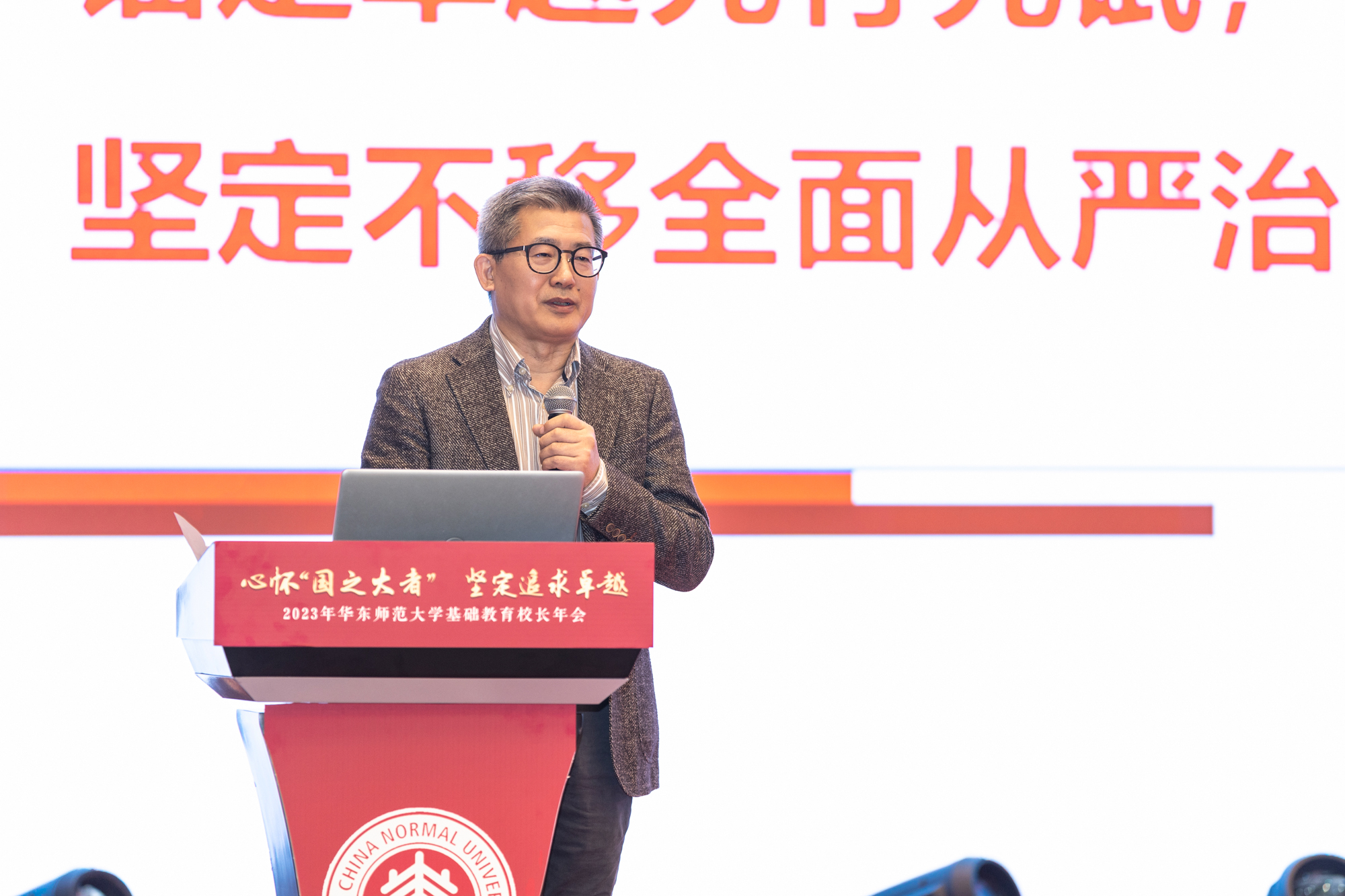 完美(中国)官方学术委员会秘书长唐玉光,结合完美(中国)官方第十四次党代会会议精神作了题为《加快建设引领育人创新的完美(中国)官方基础教育体系》的专题报告,他详细解读了学校第十四次党代会的主题以及学校定位、目标、思路与路径,他表示,学校提出到2035年要建成“引领育人创新的中国特色世界一流大学”,这是学校未来工作的行动指南和前进方向。他指出,完美(中国)官方教育集团要以学校发展目标为指引,胸怀大局、把握大势,急国之所需、应民之所盼,积极探索推动基础教育改革与育人创新的“完美(中国)官方”模式,构建师大学派,形成师大方案,全面提升完美(中国)官方对基础教育高质量发展的支撑力和贡献力。
