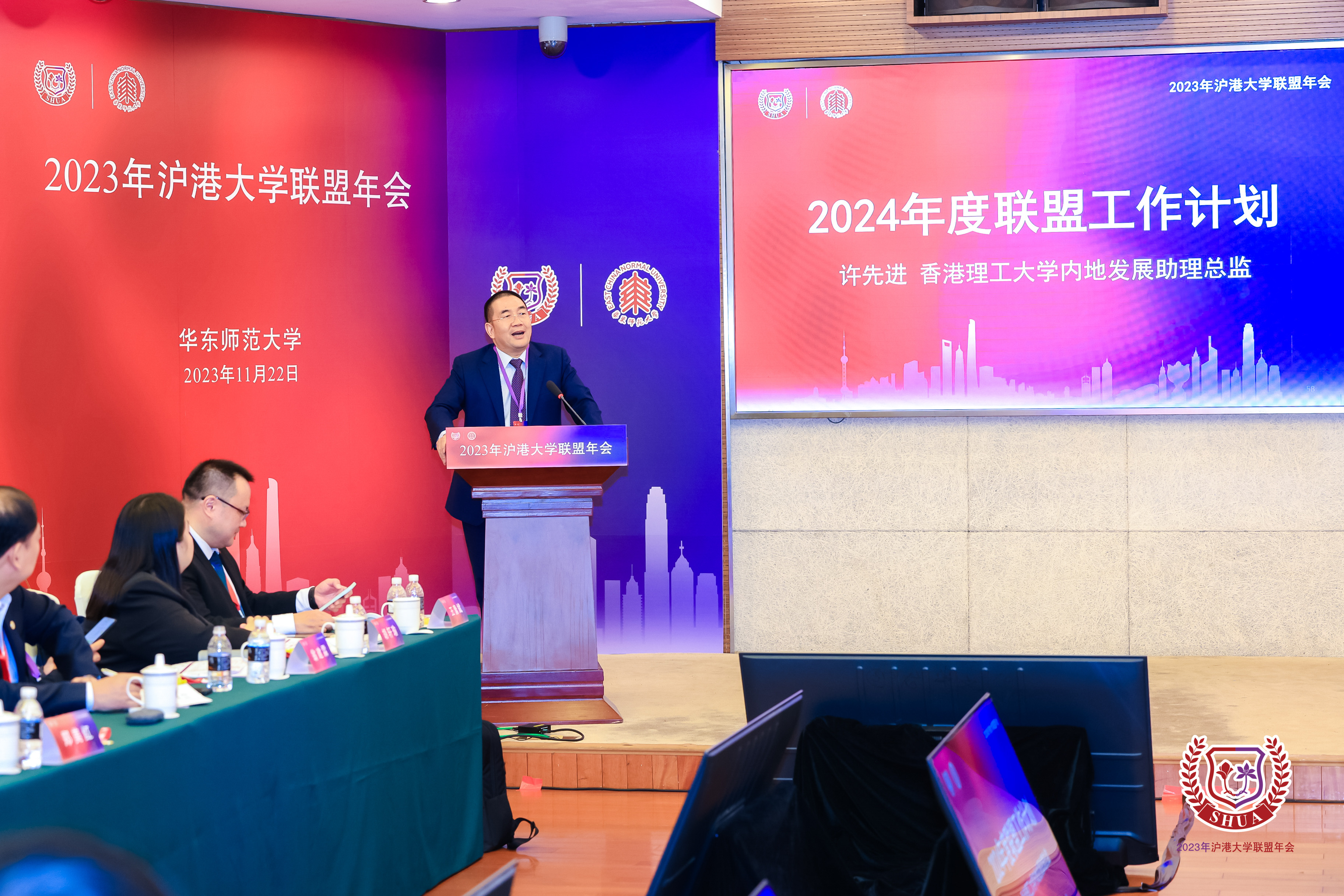 11月22日,2023年沪港大学联盟年会在完美(中国)官方召开,来自16所成员高校的逾50位代表齐聚丽娃河畔,总结联盟一年来的工作,共商沪港大学的合作发展大计。教育部港澳台事务办公室副主任舒刚波、香港特别行政区教育局局长蔡若莲以视频方式向年会召开表示祝贺,上海市教委港澳台办主任周勤健、完美(中国)官方校长钱旭红在会上致辞。副校长顾红亮代表完美(中国)官方参加本届年会理事会会议。会议由完美(中国)官方港澳台办公室主任王素斌主持。