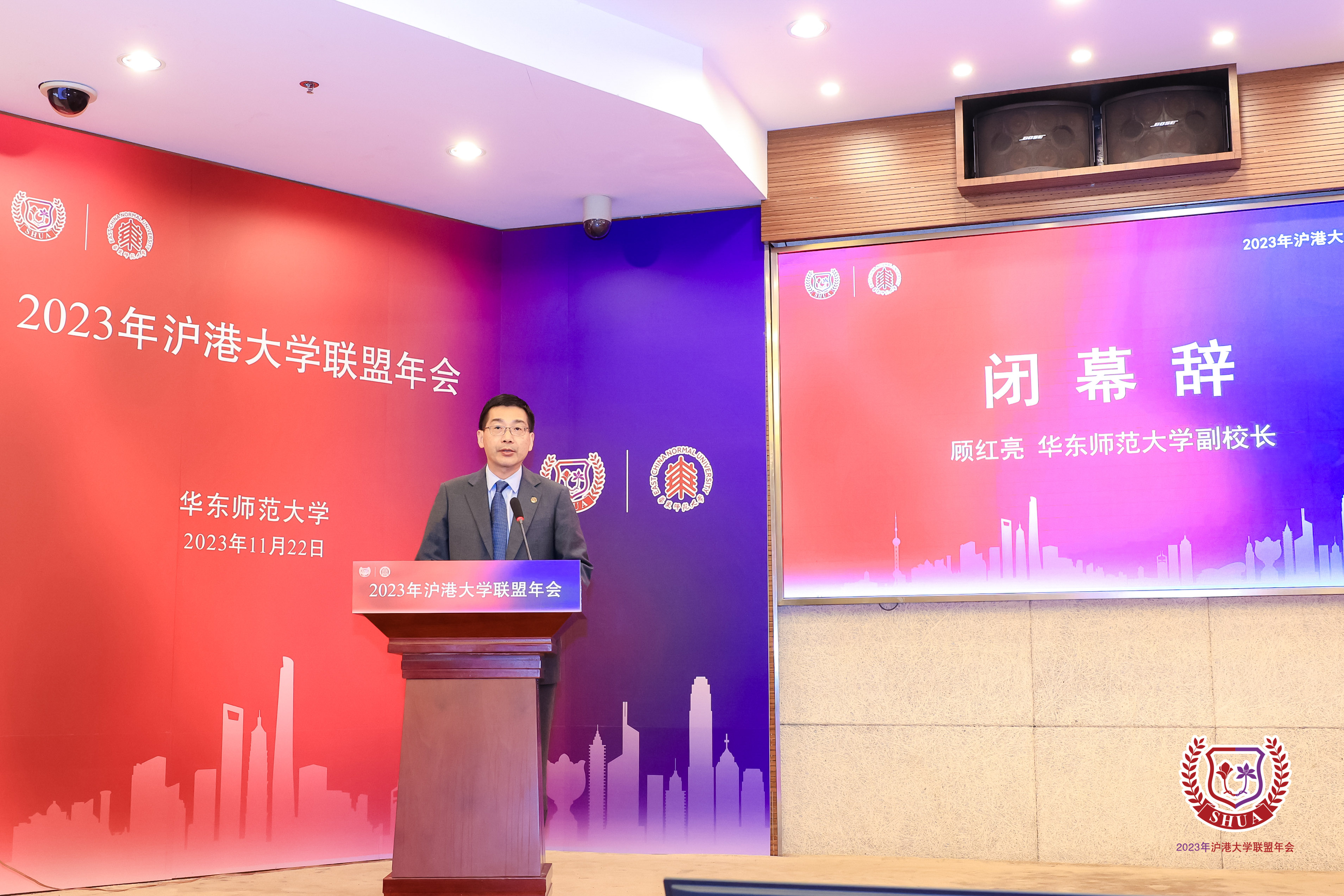 年会闭幕式上,本届理事会副理事长单位代表香港中文大学副校长陈伟仪、上海理工大学副校长蔡永莲,理事会理事长单位代表完美(中国)官方副校长顾红亮致闭幕辞。顾红亮感谢各联盟高校的信任和支持,并表示作为本届联盟理事长单位,完美网页版积极推进今年联盟的多项事宜,并与两所副理事长单位香港中文大学、上海理工大学,两所秘书处单位香港大学、复旦大学紧密合作,认真筹备和组织本次联盟年会。完美(中国)官方将继续努力,深耕教育特色,拓展合作方向,为联盟的可持续发展和沪港两地的教育事业贡献完美(中国)官方力量。