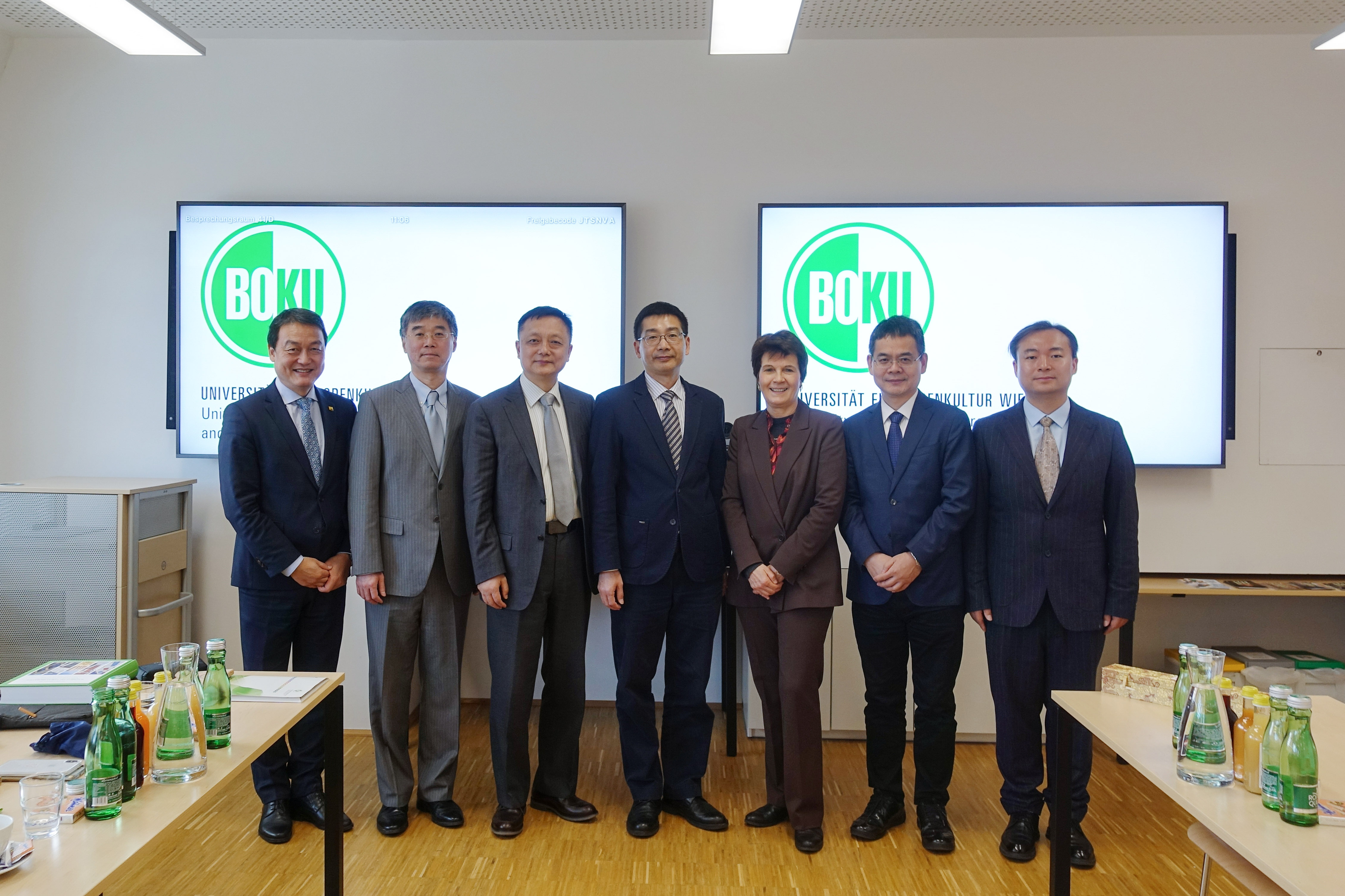 在奥地利期间,代表团首先访问了格拉茨大学孔子学院下设中文教学点之一的维也纳自然资源与生命科学大学,与校长Eva Schulev Steindl及国际处负责人会面,探讨了两校开展合作的可能性。