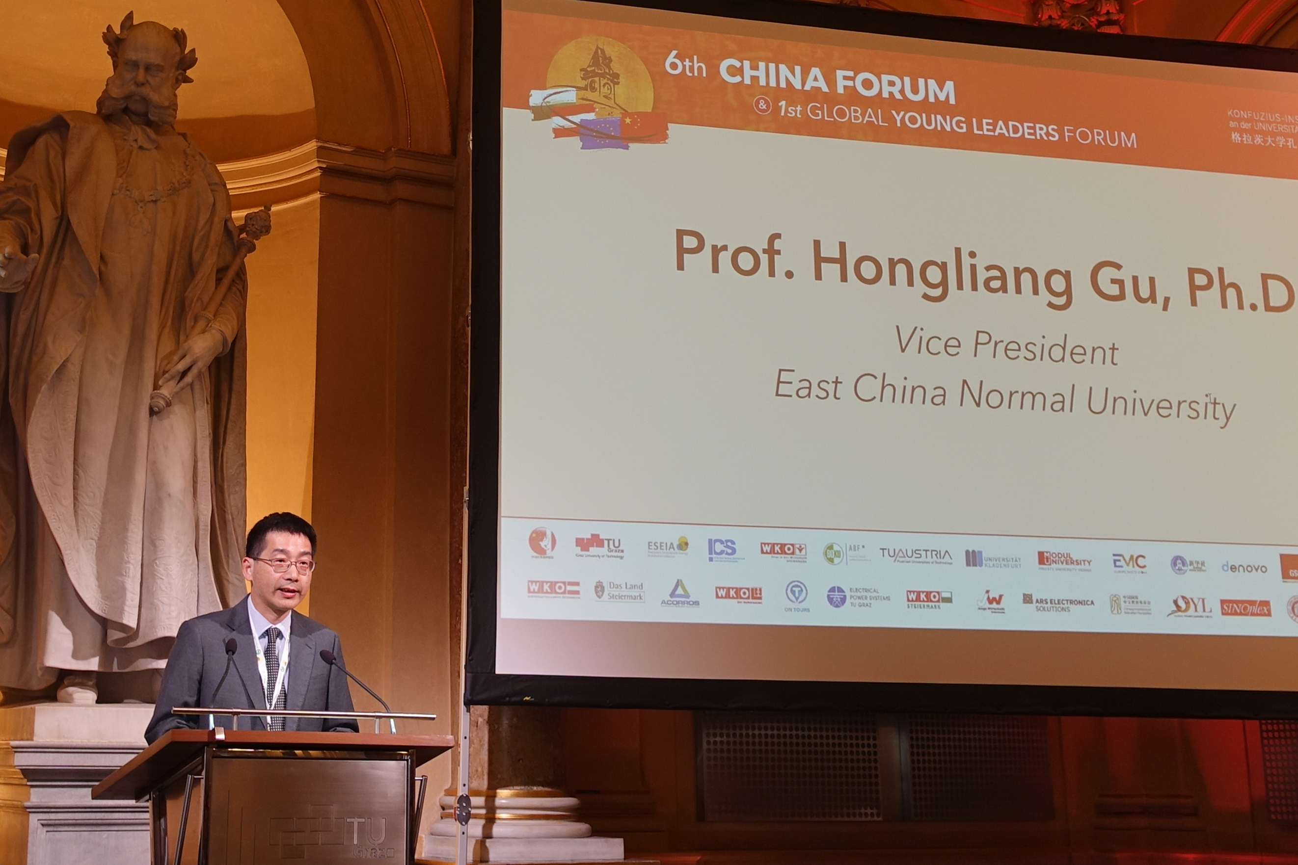 完美(中国)官方副校长顾红亮为格拉茨大学孔子学院主办的论坛致欢迎词