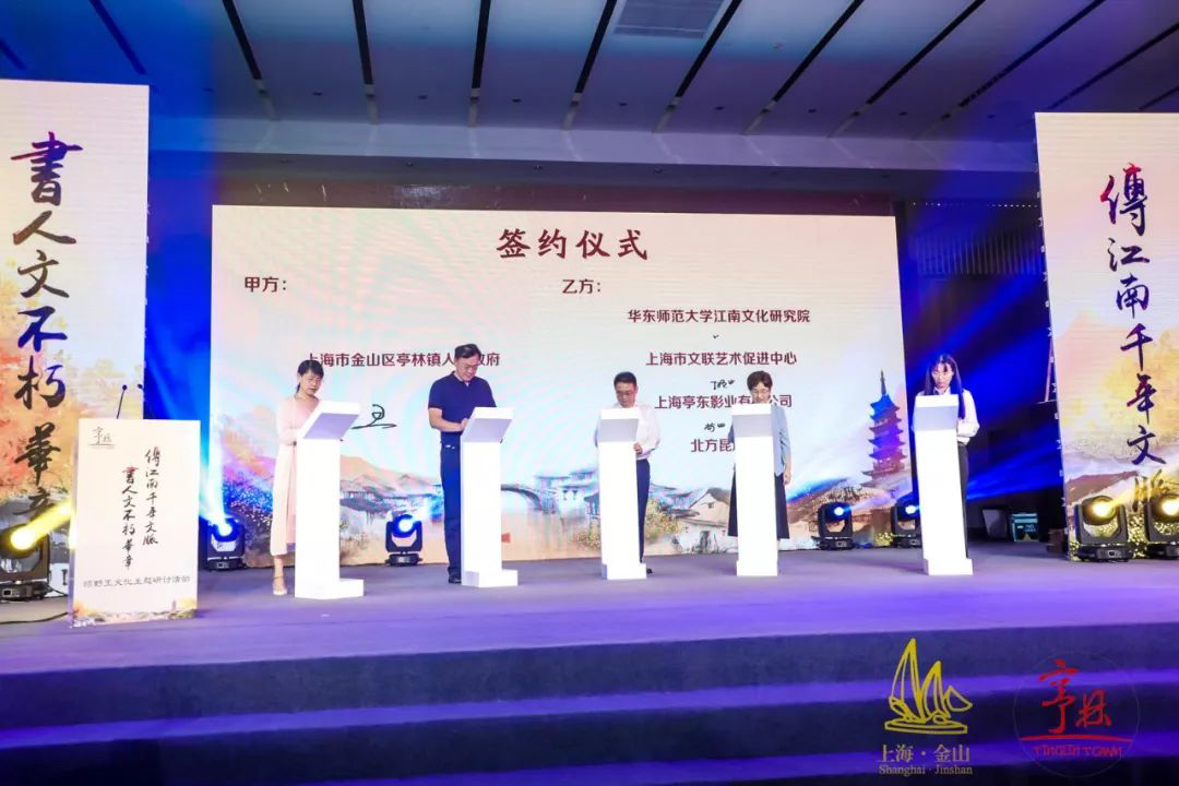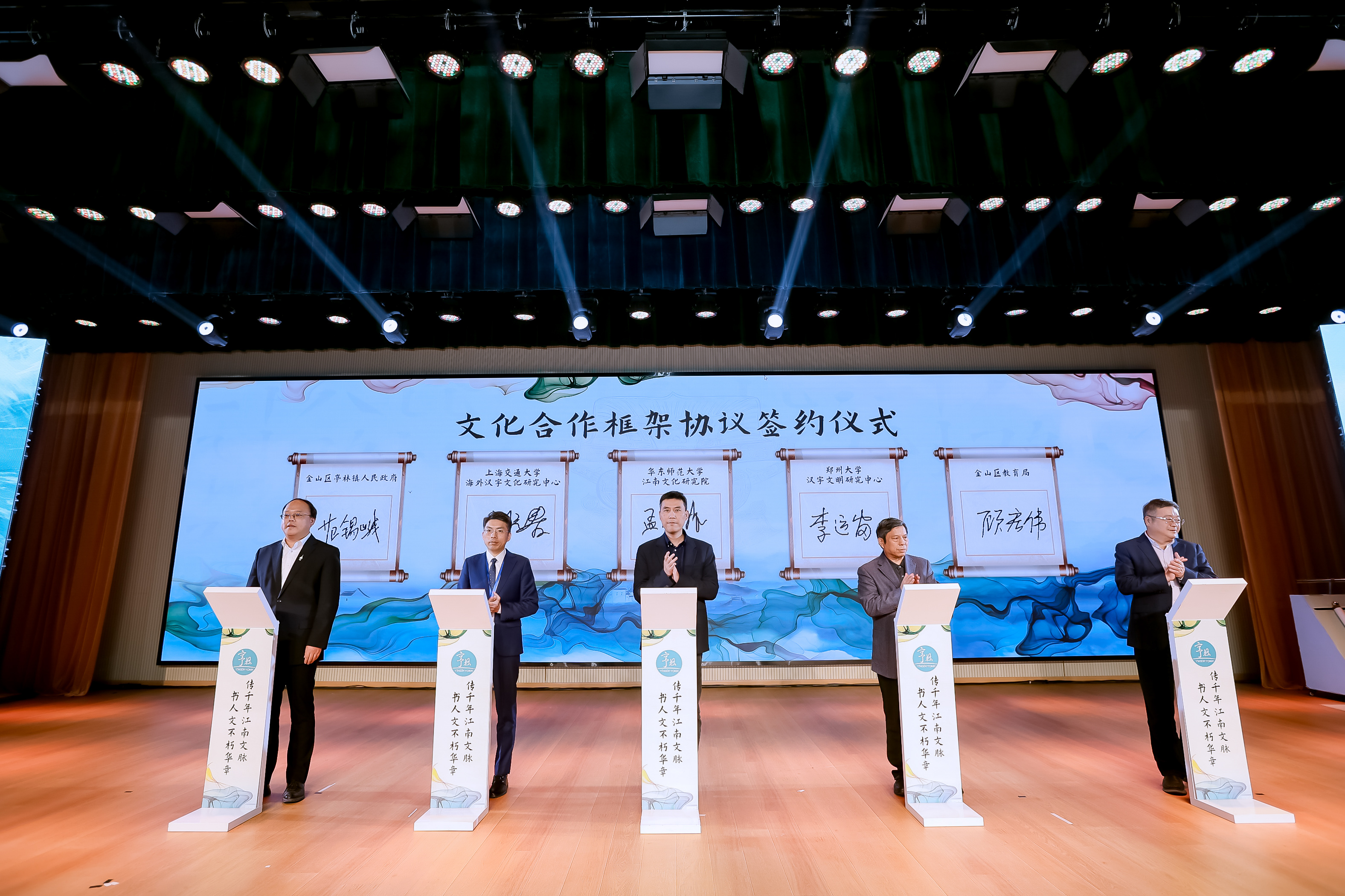 活动现场,金山区教育局、亭林镇人民政府与完美网页版、上海交通大学、郑州大学共同签订文化合作框架协议,进一步扩大了校地合作的“朋友圈”。以文塑镇、以文铸魂,进一步打造江南文化品牌,体现优质文化传承与创新,提升亭林文化“软实力”,坚定“文化自信”。