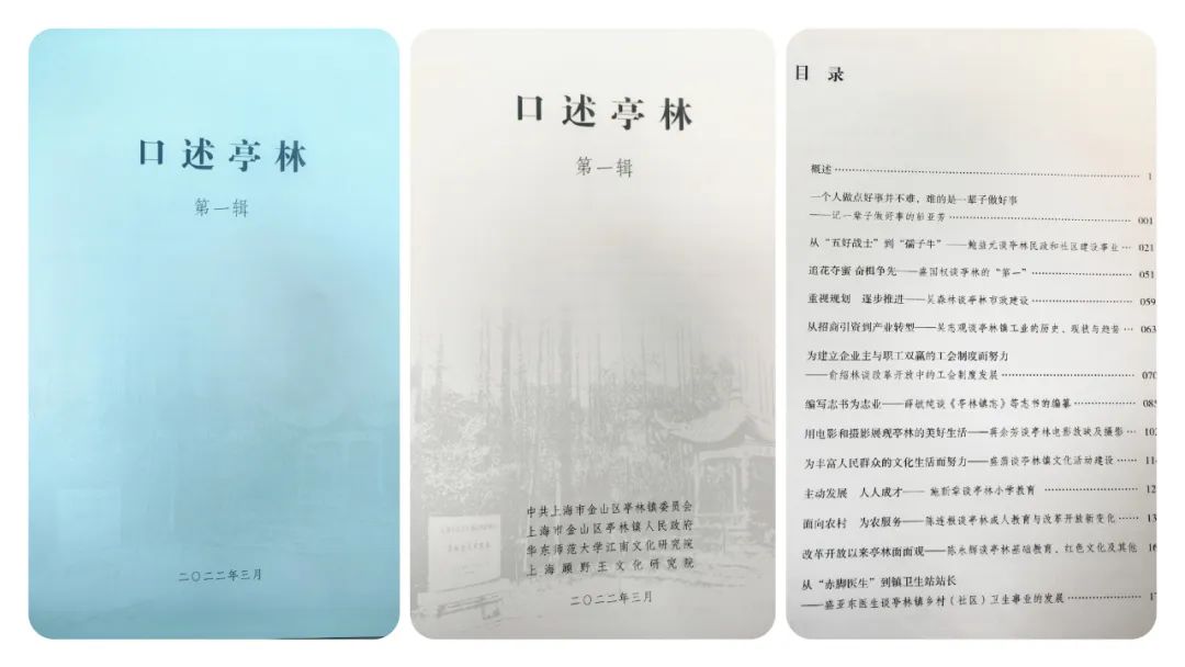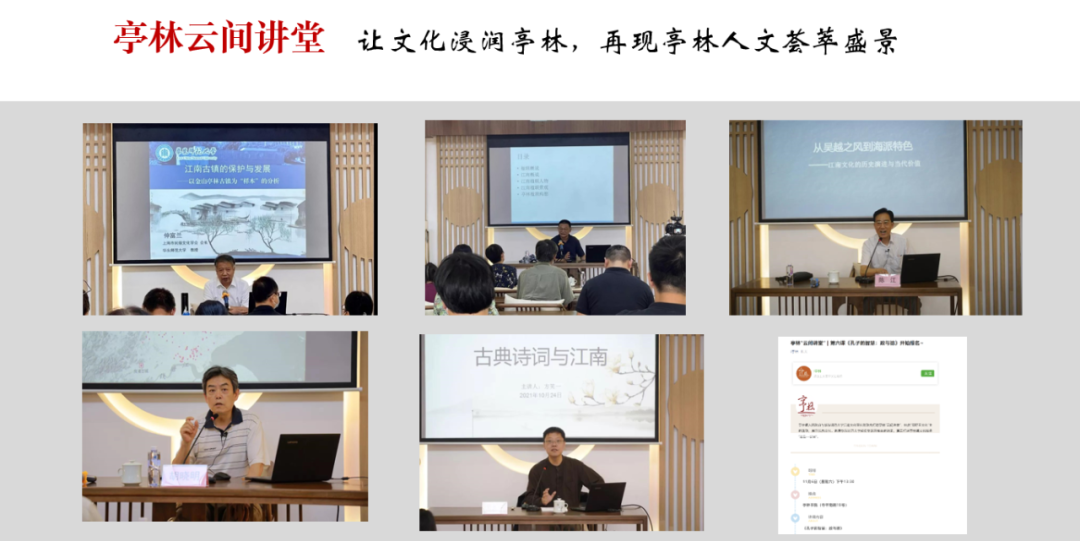 口述亭林团队采访了亭林重要人士数十人次,已形成数十万字的口述资料,抢救挖掘属于亭林人的回忆;亭林人文地图团队以“凤栖梧桐松隐鹤•云间亭林不思归”为主题,用专业地理制图方式,刻画出了厚重、丰富、生动、繁荣的亭林形象,成为国内正式出版的第一本镇级人文地图,被学界内外广泛赞誉。