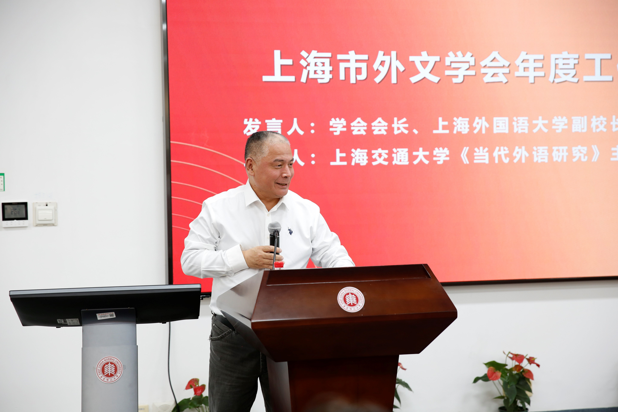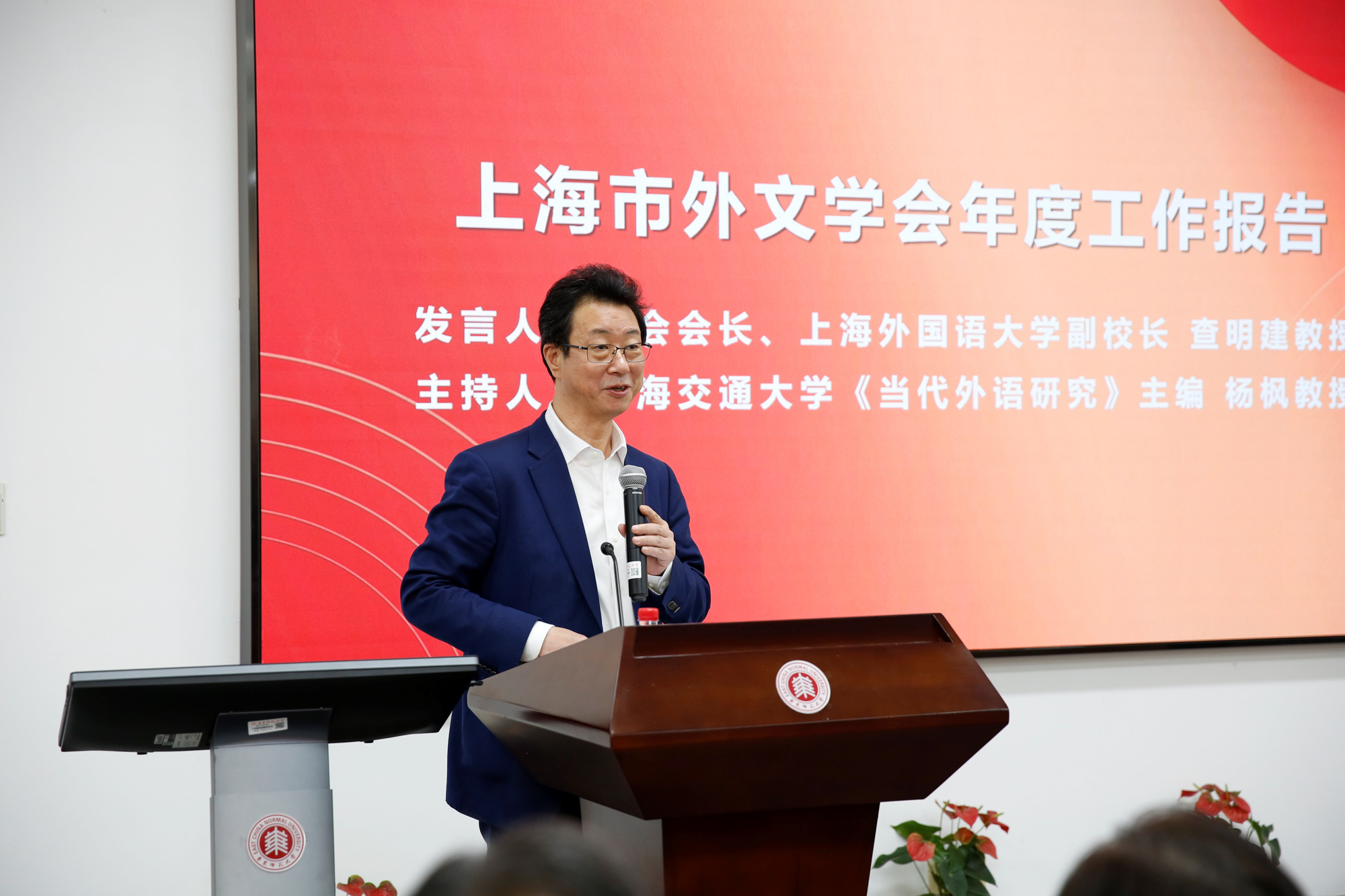 上海市外文学会会长、上海外国语大学副校长查明建作外文学会年度工作报告