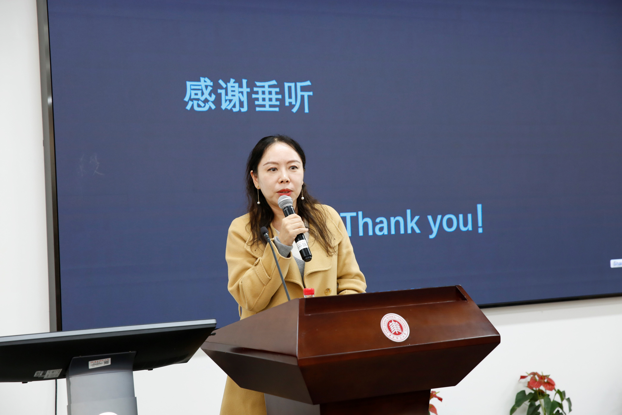 上海市外文学会副会长兼秘书长、同济大学外国语学院院长吴赟主持报告