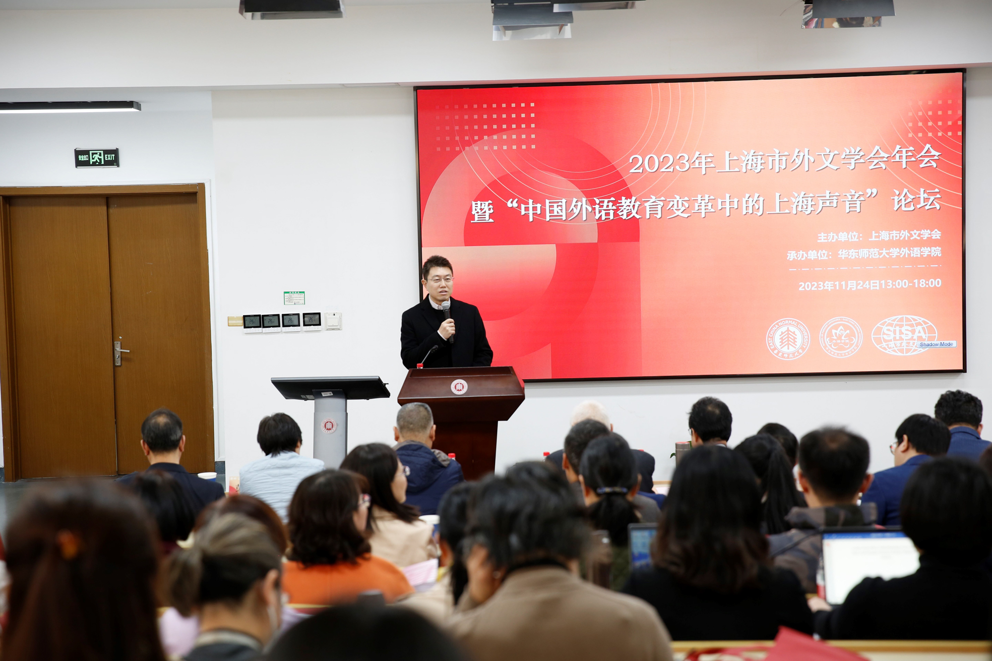 11月24日下午,“2023年上海市外文学会年会暨‘中国外语教育变革中的上海声音’研讨会”在完美(中国)官方举办。本次年会由上海市外文学会主办,完美(中国)官方外语学院承办。国内外语界专家学者和上海市外文学会会长、副会长及各理事单位的常务理事、理事、教师等200余人齐聚完美(中国)官方外语学院。与会专家学者就“外语人才培养与外语教学改革”“外语教育在教育强国战略中的定位”“外语教育变革的方向与目标”等主题开展热烈讨论。大会开幕式由学会副会长、完美网页版外语学院院长兼党委副书记杨延宁以及学会副会长、《当代外语研究》主编杨枫共同主持。