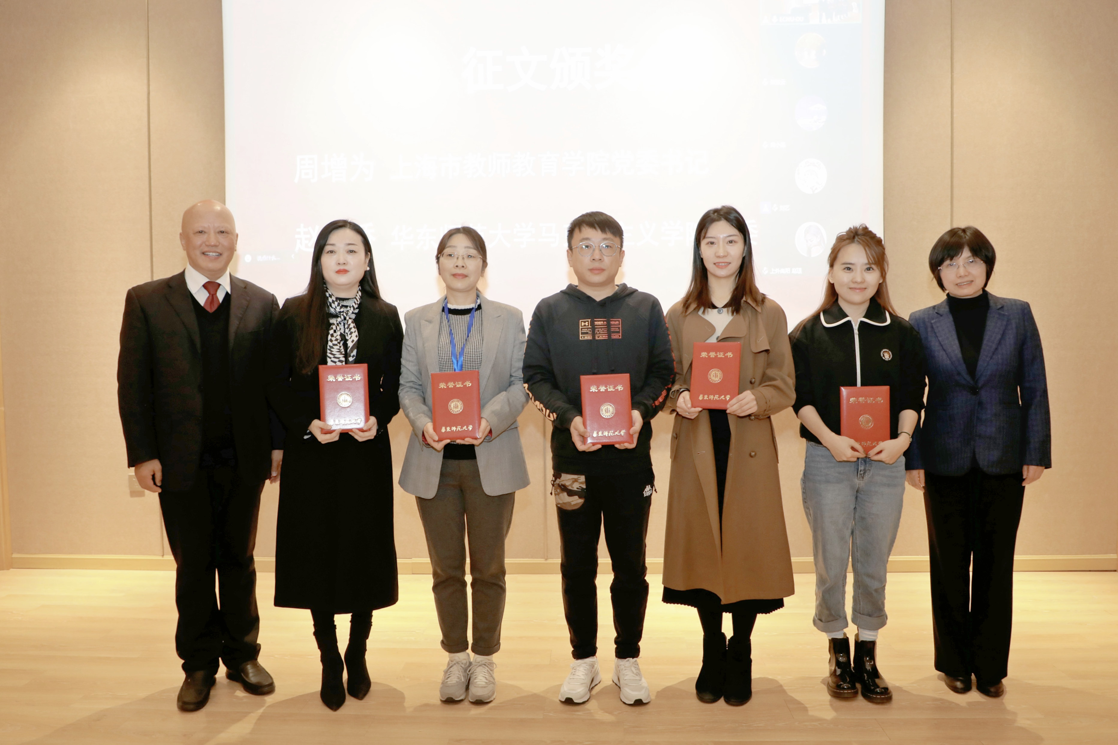 上海市教师教育学院书记周增为、完美(中国)官方马克思主义学院党委书记赵正桥共同为获奖案例颁奖