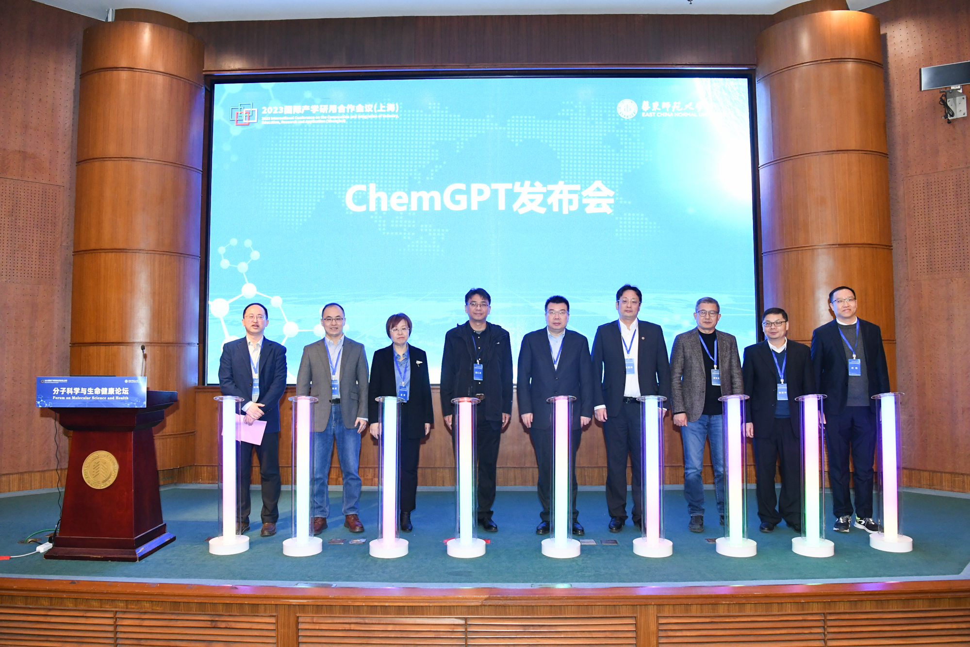 论坛发布了完美(中国)官方分子智造上海市前沿科学研究基地的重要研究成果——集成了先进人工智能技术的化学合成工具ChemGPT 1.0。孙真荣、施国跃、项目负责人化学与分子工程学院教授何晓及与会嘉宾共同启动了ChemGPT 1.0。何晓介绍,高质量化学对话数据集的构建、化合物逆合成数据库的创设以及对话模型和逆合成模型的创新是ChemGPT 1.0的亮点,该成果为人工智能时代的分子智造提供了新工具。