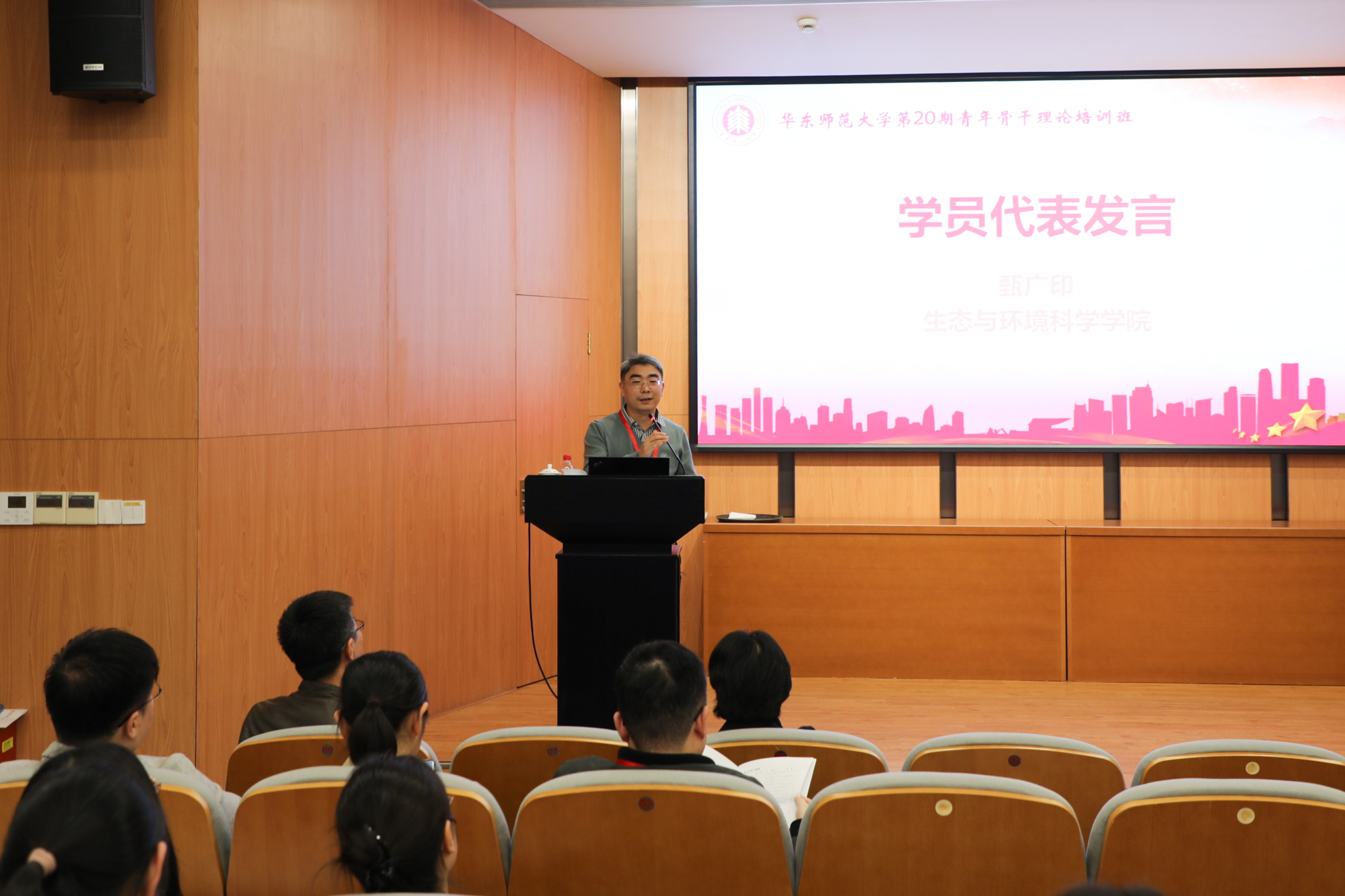 培训班班长、生态与环境科学学院教授甄广印作为学员代表发言
