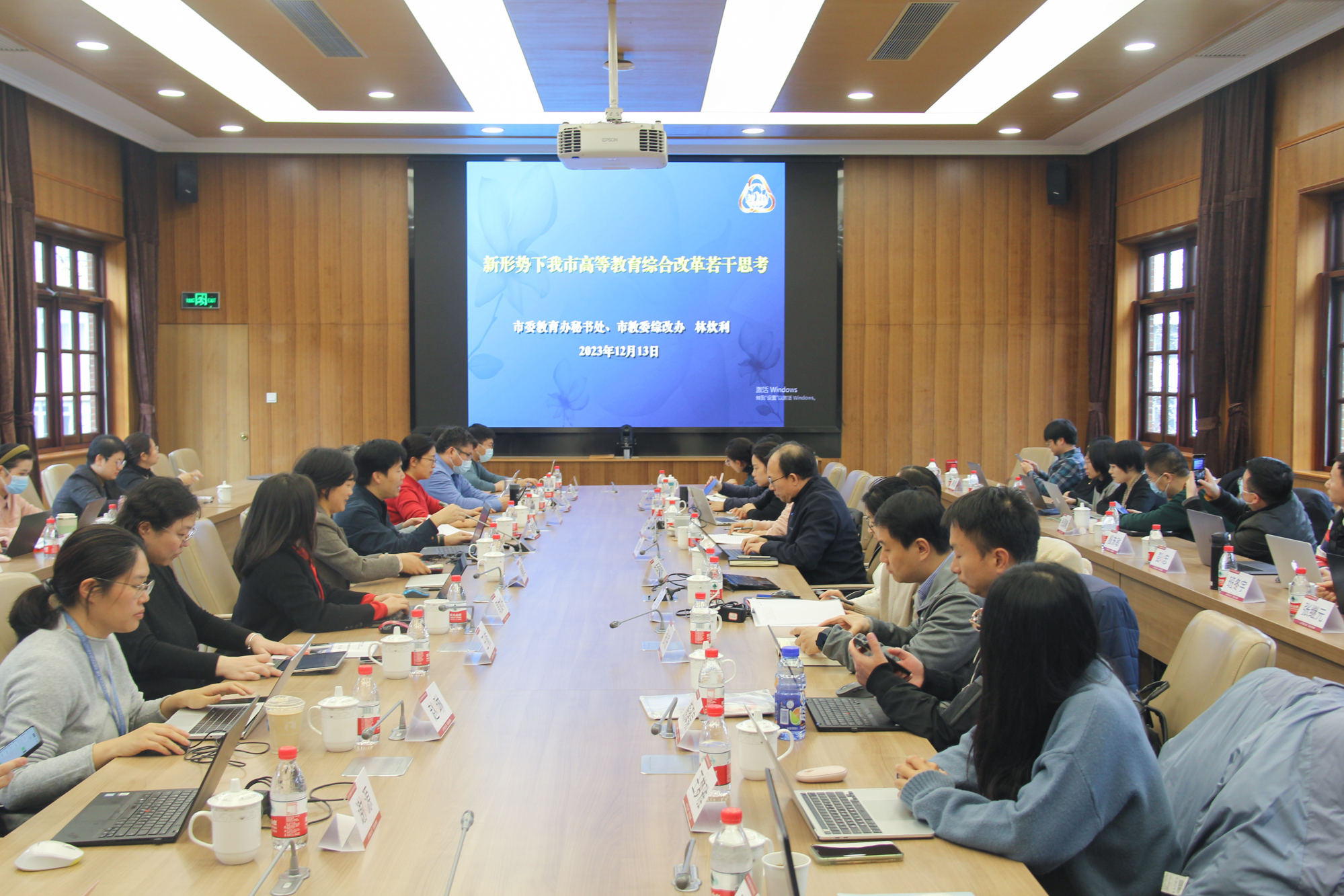 林炊利以《新形势下我市高等教育综合改革若干思考》为题,首先介绍了我国教育改革背景和宏观环境,以及对上海高等教育综合改革政策布局的影响,指出在“教育报国”“高校报国”关键时刻,高校应着力解决国家战略急需问题。接着,林炊利介绍了上海市高等教育的基本情况及面临的重大挑战,提出了改革的趋势与可能思路。