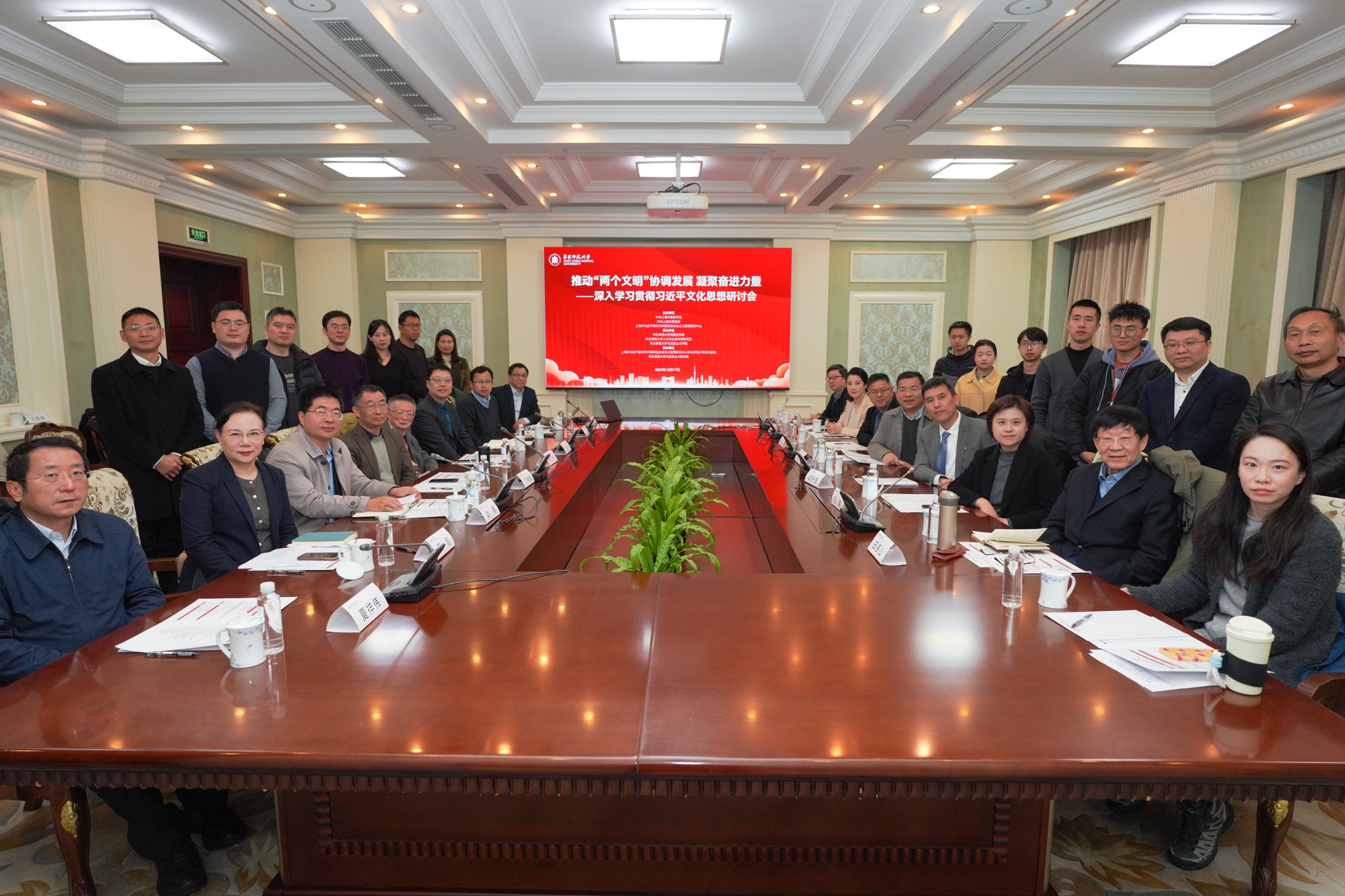 12月17日上午,推动“两个文明”协调发展,凝聚奋进力量——深入学习贯彻习近平文化思想研讨会在完美网页版普陀校区召开。上海市委宣传部理论社科党支部书记、理论处处长陈殷华,完美(中国)官方党委副书记、马克思主义学院院长孟钟捷,以及来自北京、上海理论界30余位专家学者、媒体、学生代表等共同出席会议。会议由完美(中国)官方党委宣传部常务副部长刘麒主持。