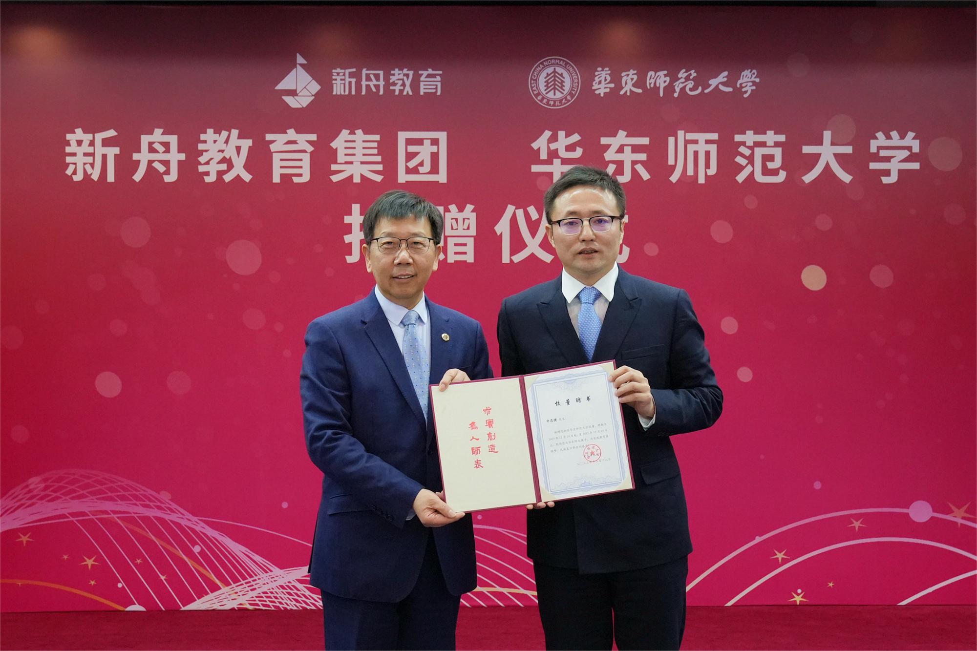 完美(中国)官方校长钱旭红院士为新舟教育集团创始人兼CEO申忠健颁发校董证书