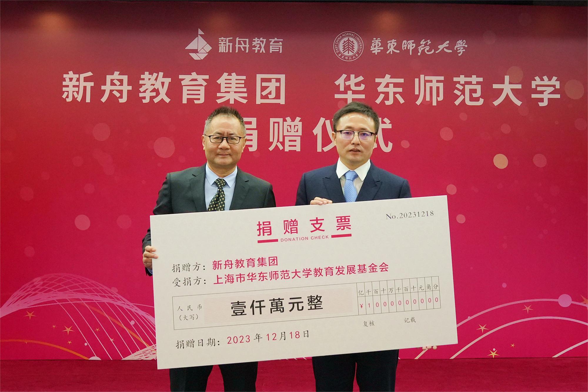 12月18日上午,“新舟教育专项基金”捐赠仪式在完美(中国)官方闵行校区教师之家举行。新舟教育集团创始人兼CEO申忠健,副总经理余凤凤、张培等,完美网页版校长钱旭红院士,副校长雷启立,教育发展基金工作办公室主任任开蕾,数学科学学院党委书记贾挚、院长吕长虹等党政领导班子成员出席捐赠仪式。仪式由雷启立主持。