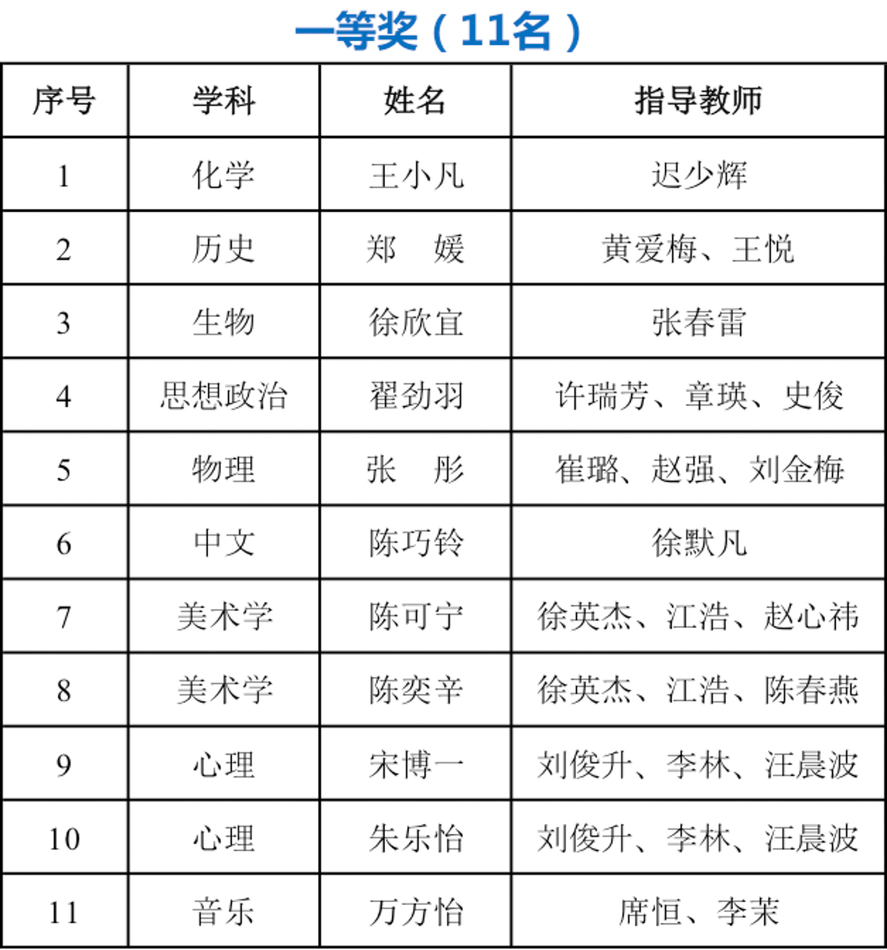 第五届长三角师范生教学基本功大赛完美(中国)官方师范生一等奖获奖名单
