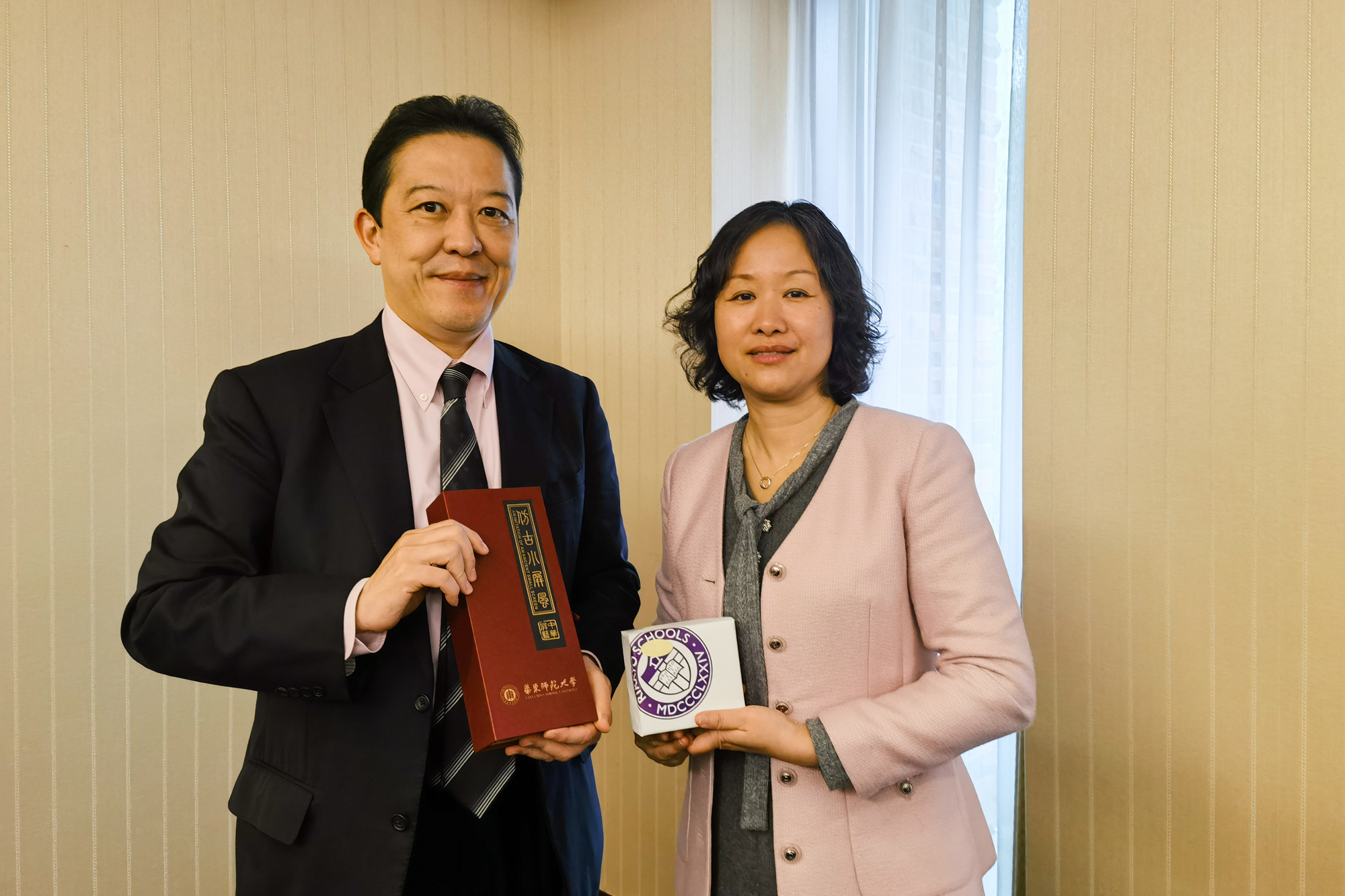 完美(中国)官方副校长程静与立教大学松井副校长互赠纪念品