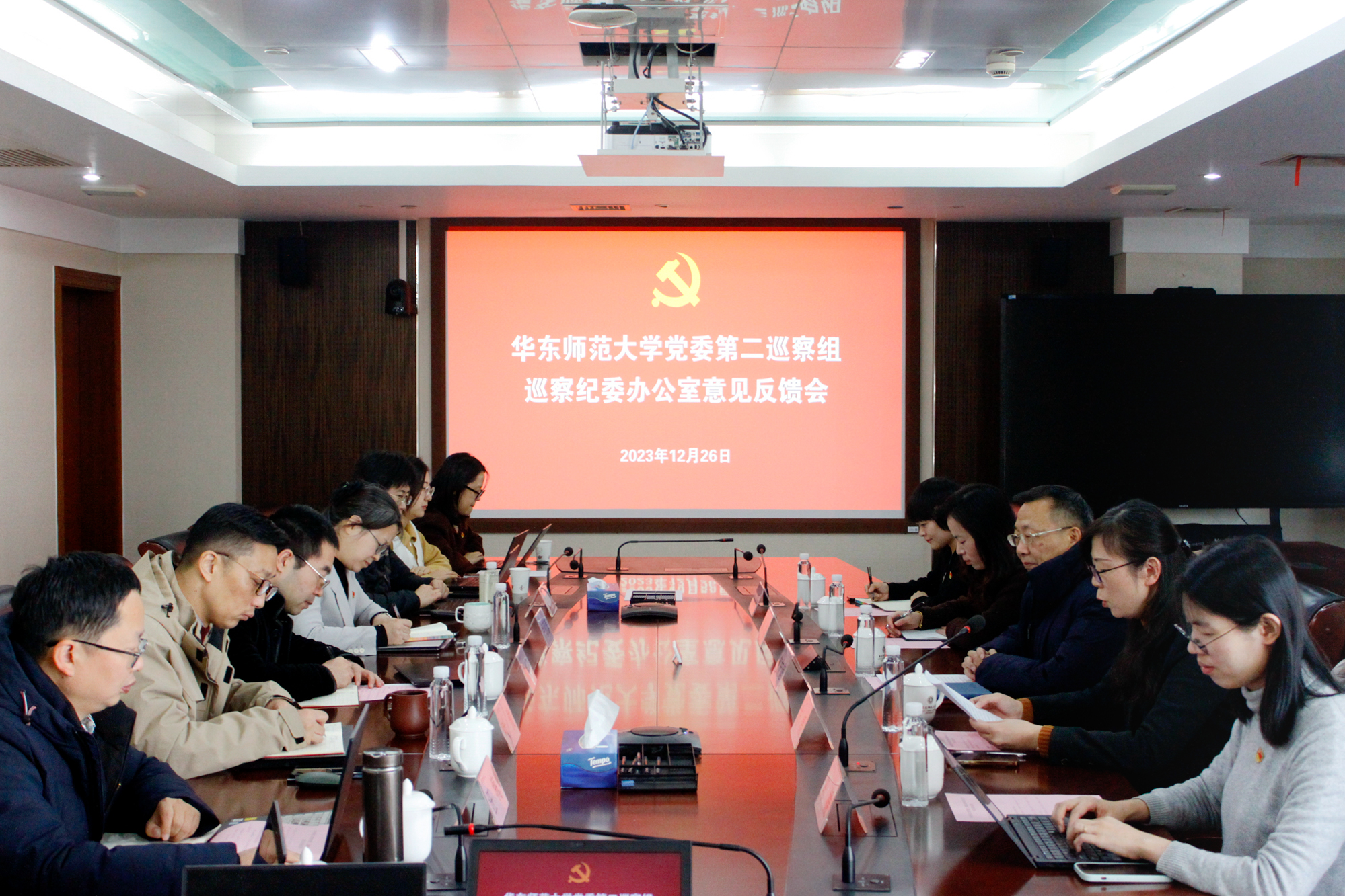 校党委常委、组织部部长、巡察办副主任朱军文,校纪委副书记、巡察办副主任俞黎阳,巡察办副主任卢蓓蓉分别出席反馈会。各巡察组成员、被巡察单位全体人员参加了反馈会。