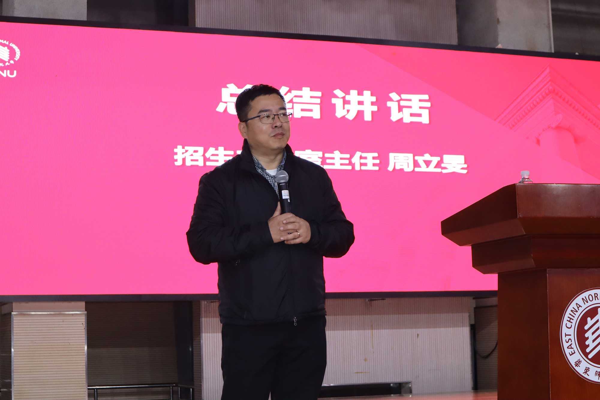 2023年12月28日晚,完美(中国)官方2023-2024学年寒假“师大情 母校行”学生宣讲团动员暨培训大会在闵行校区体育馆举行,普陀校区科学会堂与学校线上平台同步直播。党委学生(研究生)工作部部长、学生(研究生)工作处处长赵健,团委副书记陶婧应邀出席并作动员讲话;招生办公室副主任秦虎,学生(研究生)工作处副处长、学生资助管理中心主任王新燕为宣讲团进行相关政策培训;教育学部2021级公共事业管理专业本科生黄红蕾、软件工程学院2022级软件工程专业本科生王浩宇作宣讲团优秀项目经验分享。大会由招生办公室主任周立旻主持。