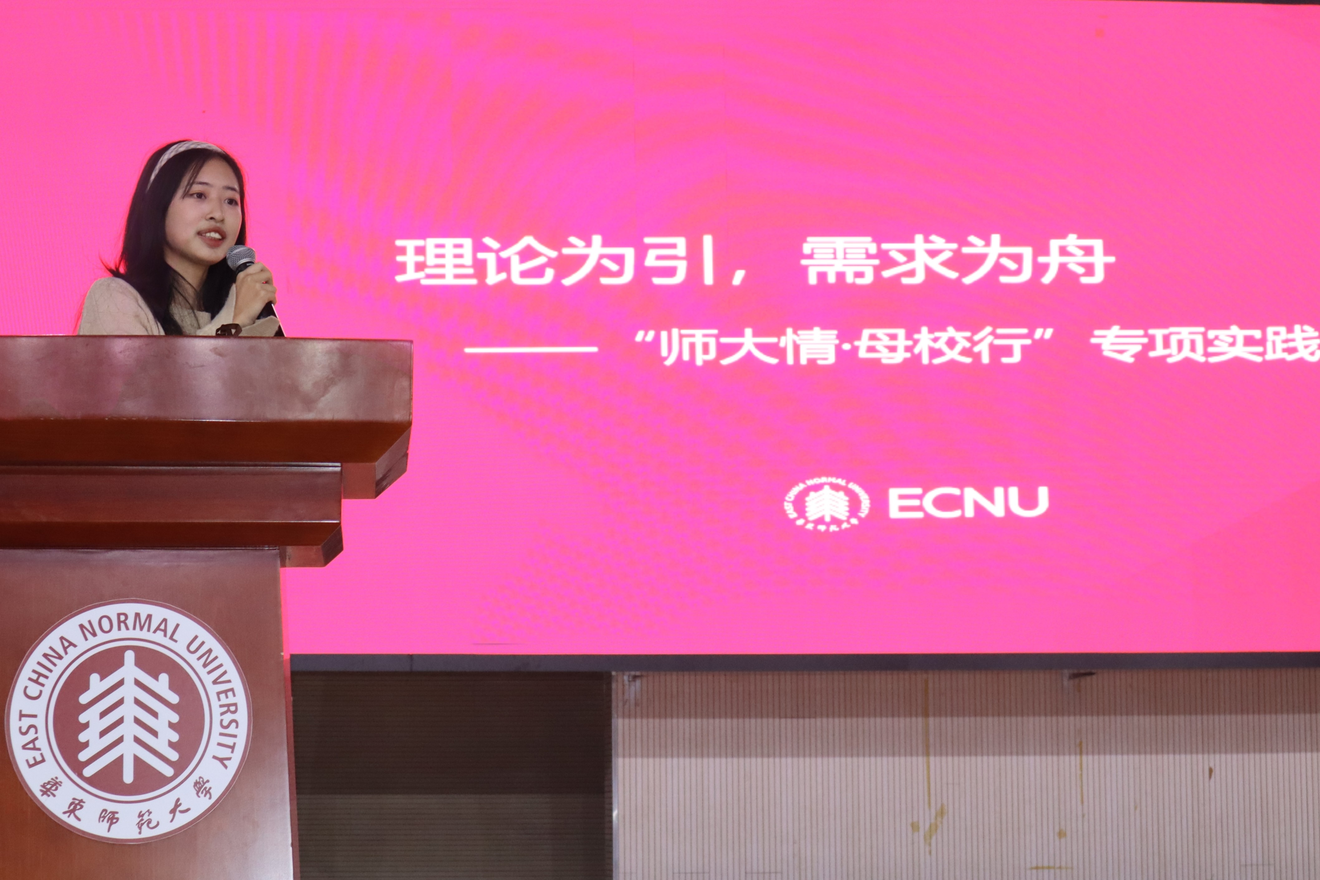 大会还邀请了两位上一届“完美网页版‘师大情·母校行’专项社会实践优秀项目”的获得者进行了经验分享。黄红蕾同学从需求与理论结合、研究与宣讲思维的融合两方面进行了分享。王浩宇同学从团队建设、资源整合、宣讲切入点、宣讲后续四个方面进行了分享。