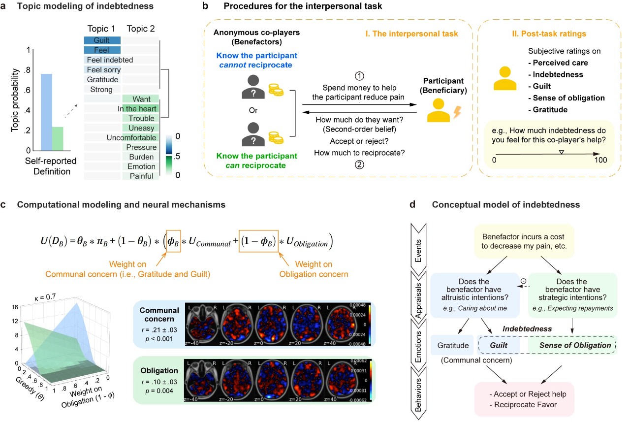 负债感是什么呢?互惠行为(Reciprocity,如接受他人恩惠并给予回馈)是人类大规模合作、民族团结和社会稳定的重要基石,是心理学、社会学、经济学和脑科学等众多领域的研究热点;社会情感则是人类互惠行为的重要驱动力。