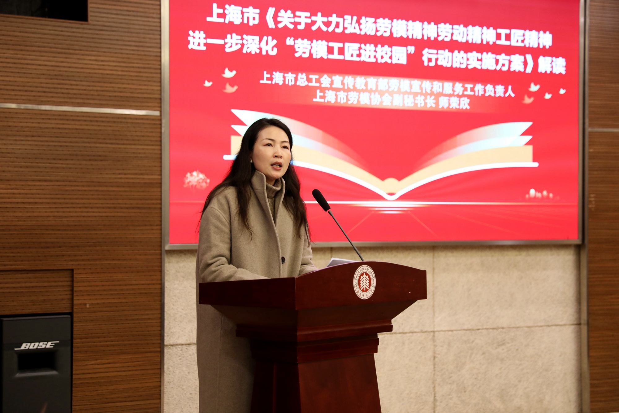 会上,上海市劳模协会副秘书长、上海市总工会宣传教育部师荣欣介绍了上海市总工会即将进一步推动“劳模工匠进校园”的相关工作。