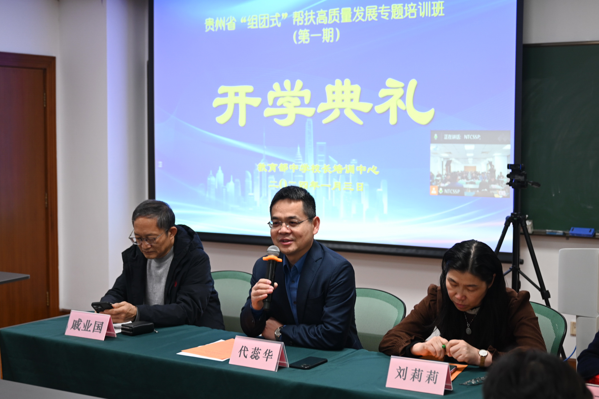 教育部中学校长培训中心主任代蕊华强调,“组团式”帮扶工作是贯彻落实党中央决策部署、持续推进脱贫地区教育发展的重要举措,是巩固拓展脱贫攻坚成果同乡村振兴有效衔接的重要抓手,是推进帮助脱贫地区学生接受公平而有质量教育的关键行动。此次贵州省“组团式”学校高质量发展专题培训班是对落实国家乡村振兴战略举措、提升县中办学质量的重要尝试,对于探索新时期学校高质量发展的内在意蕴和行动方法,进一步梳理总结“组团式”帮扶的经验具有深远意义。培训中心副主任郅庭瑾希望学员本着“开阔视野、思考问题、改进实践”的目标深度参与研修的每一个环节,更好助力学校推进实施新高考、新课程、新教材改革,推动重点帮扶县普通高中学校高质量发展。