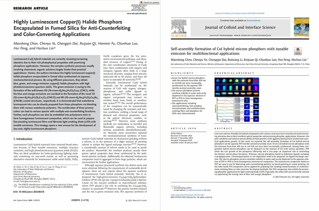 大二时,叶晨宇便通过“物理与电子科学学院双创实验室开放日”活动和电子科学系“一对一”科创实践课程,进入了林和春教授课题组,主要开展铜基荧光材料及其应用方向的研究,在林和春教授的指导下,叶晨宇聚焦学科前沿方向,以共同第一作者在Advanced Optical Materials期刊发表论文。