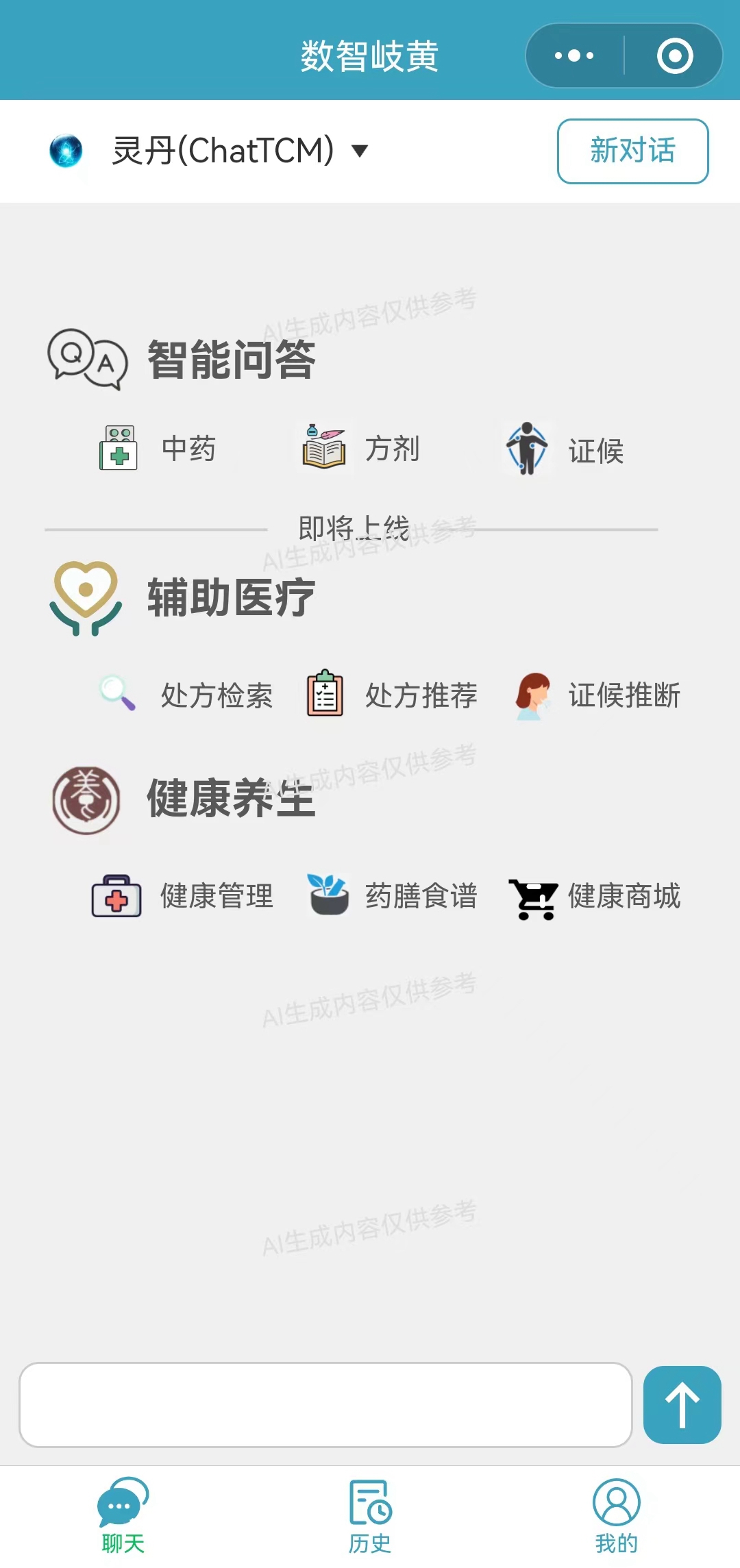 “数智岐黄”中医药大模型网页、小程序截图