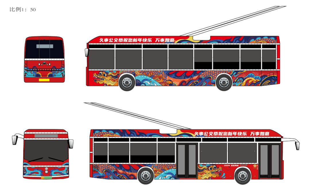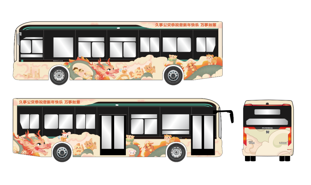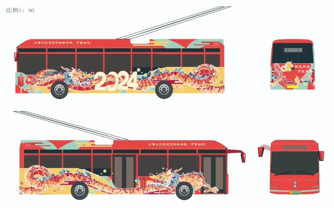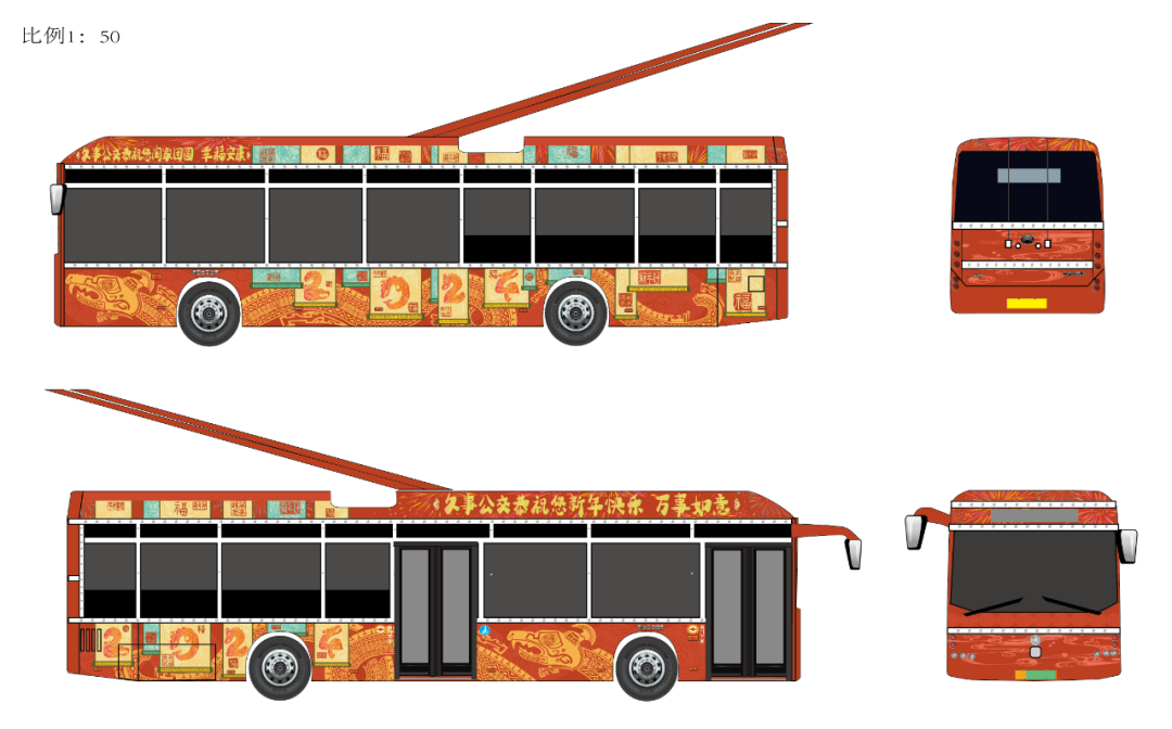 想搭乘公交彩车?获奖同学的作品已分别在本市20路、44路、55路95路、926路车身上线,欢迎搭乘体验浓浓年味!