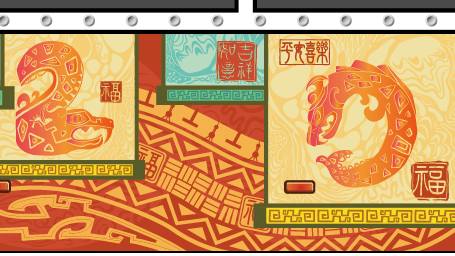“龙鳍上有东方明珠和外滩上的其他代表性建筑,我认为上海造型最有名最独特的建筑就数东方明珠。”她说自己去年第一次来到上海时,就被外滩黄浦江两岸怀旧与现代相融合的建筑风格吸引。王昕在设计时并没有将这些建筑单独呈现出来,孤立地放在画面中心。“而是把它作为纹样融入在龙身上,龙头龙尾都可见,不会过分强调,又体现了这是具有上海特色的公交车。”