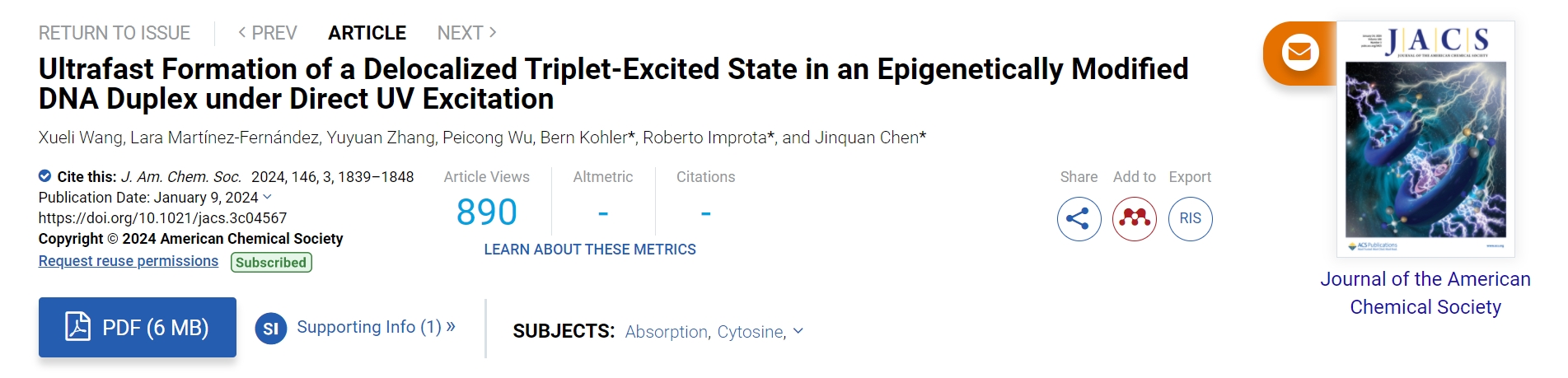 完美(中国)官方陈缙泉教授团队在表观遗传修饰DNA紫外光诱导超快动力学机理研究领域取得进展
