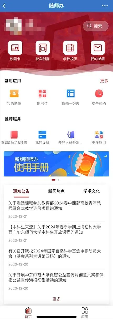全面升级“随师办”移动端平台,推进移动端一网通办建设。深入梳理与分析了共137个移动端应用和功能链接,整合了相关应用,制作出针对教职工和学生的两个全新版本的“随师办”门户。