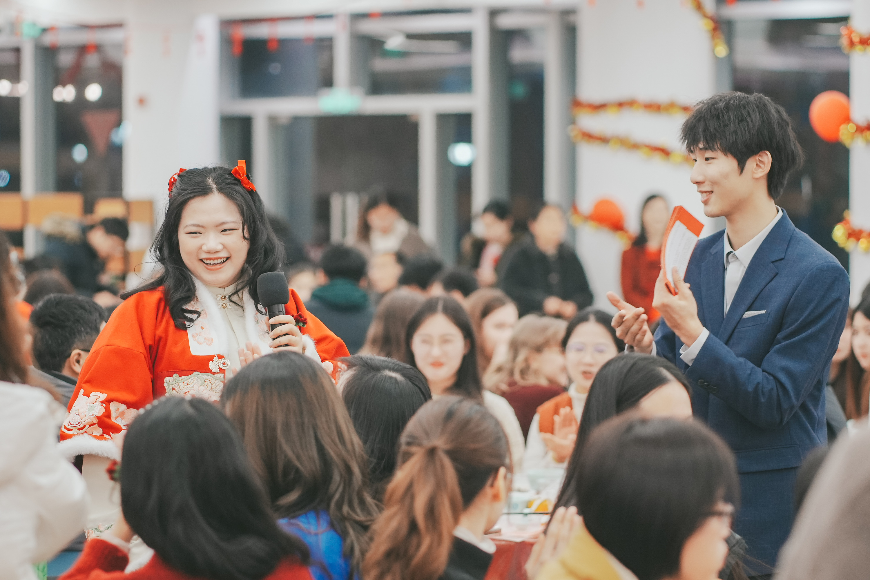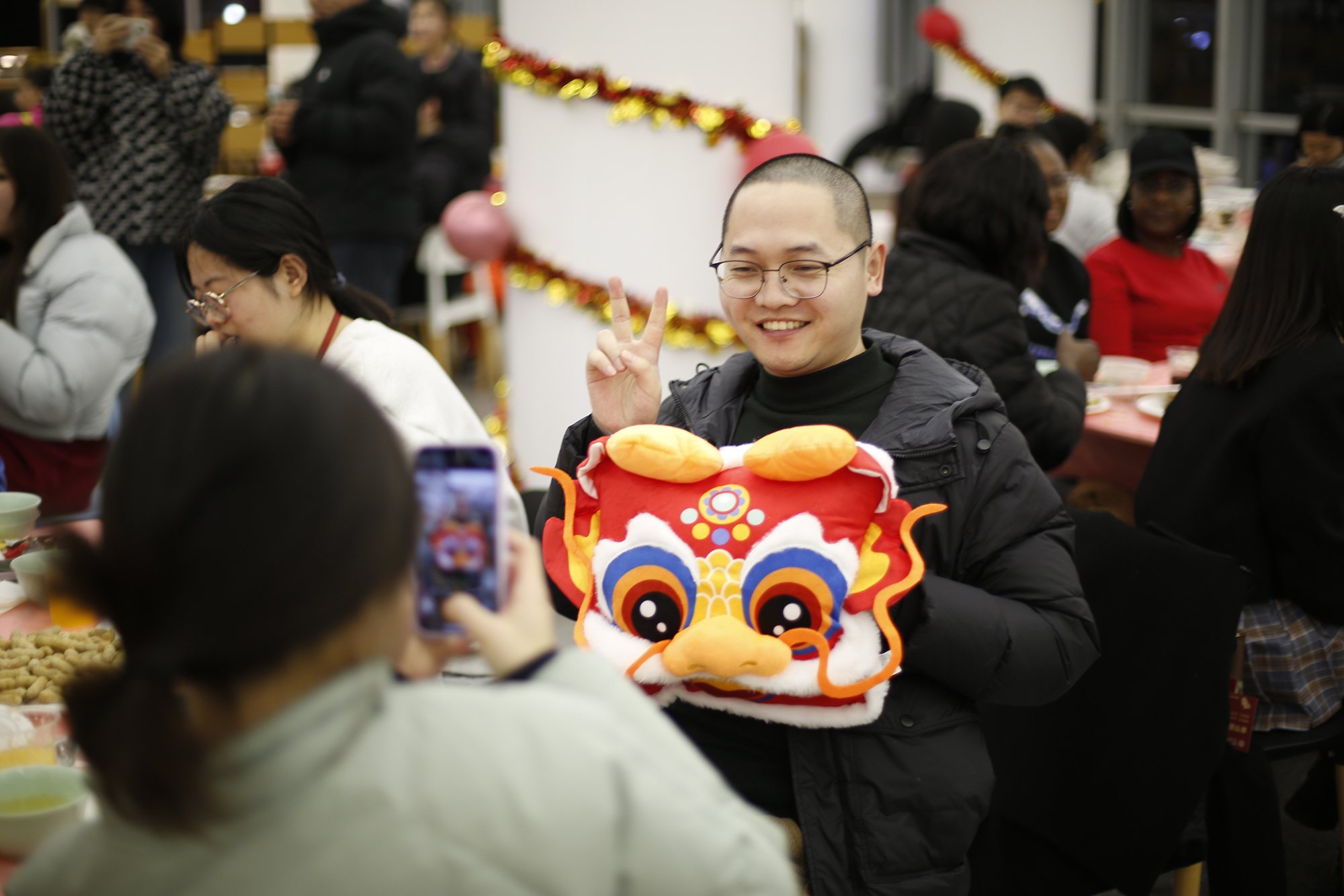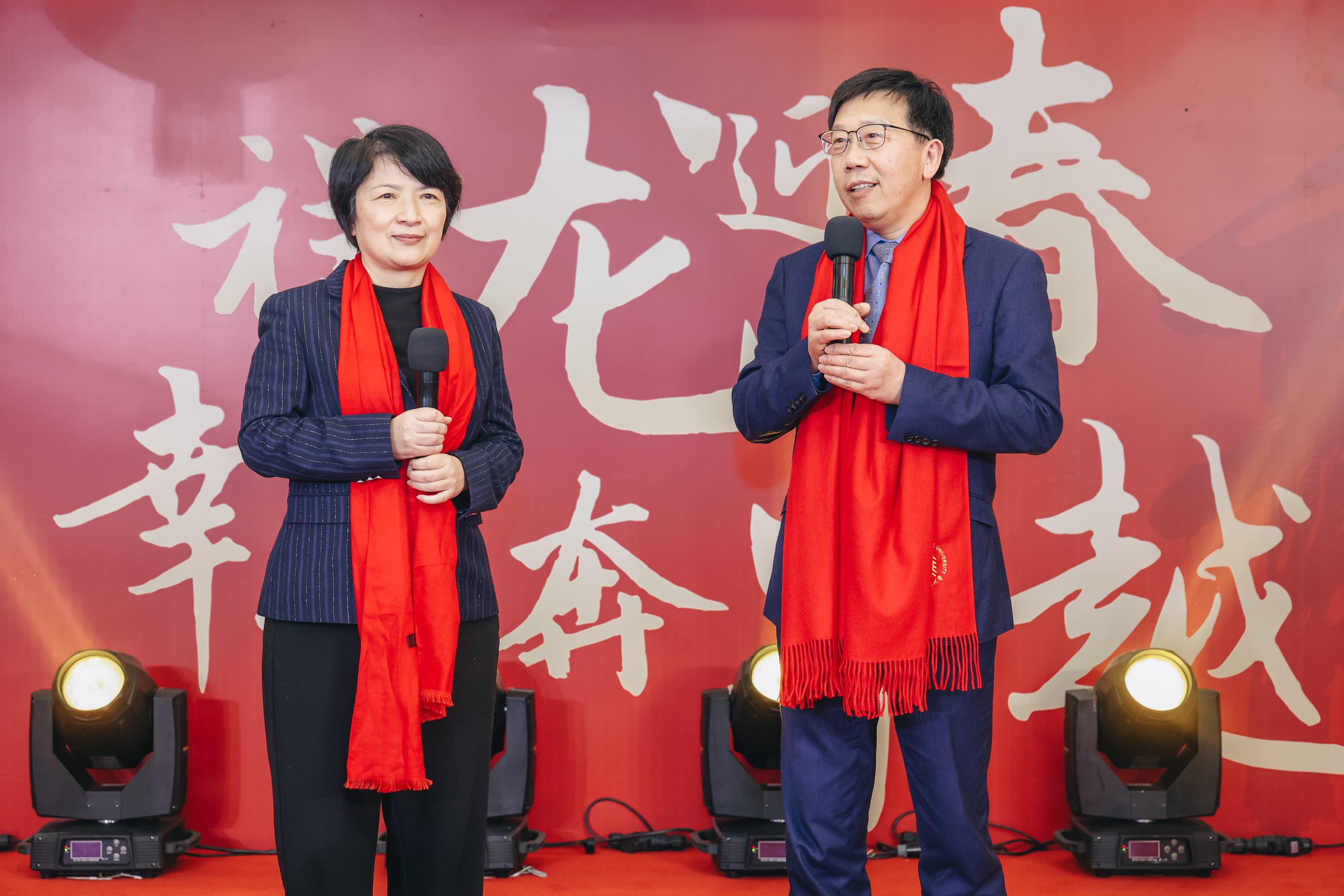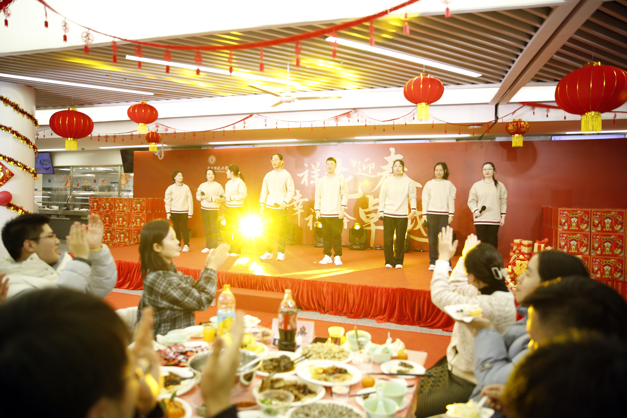 校领导梅兵、钱旭红、曹友谊、顾红亮、孟钟捷、戴立益、雷启立、施国跃、程静分别上台为留校的同学们送上新春祝福,祝愿大家龙年腾飞、如龙得水,年年同乐、同乐年年,科研如意、事业顺利,“日日实验数据丰,年年文章高分中”,同时也表示,“留校就是留家,无论在哪,完美(中国)官方永远是你们的家!”