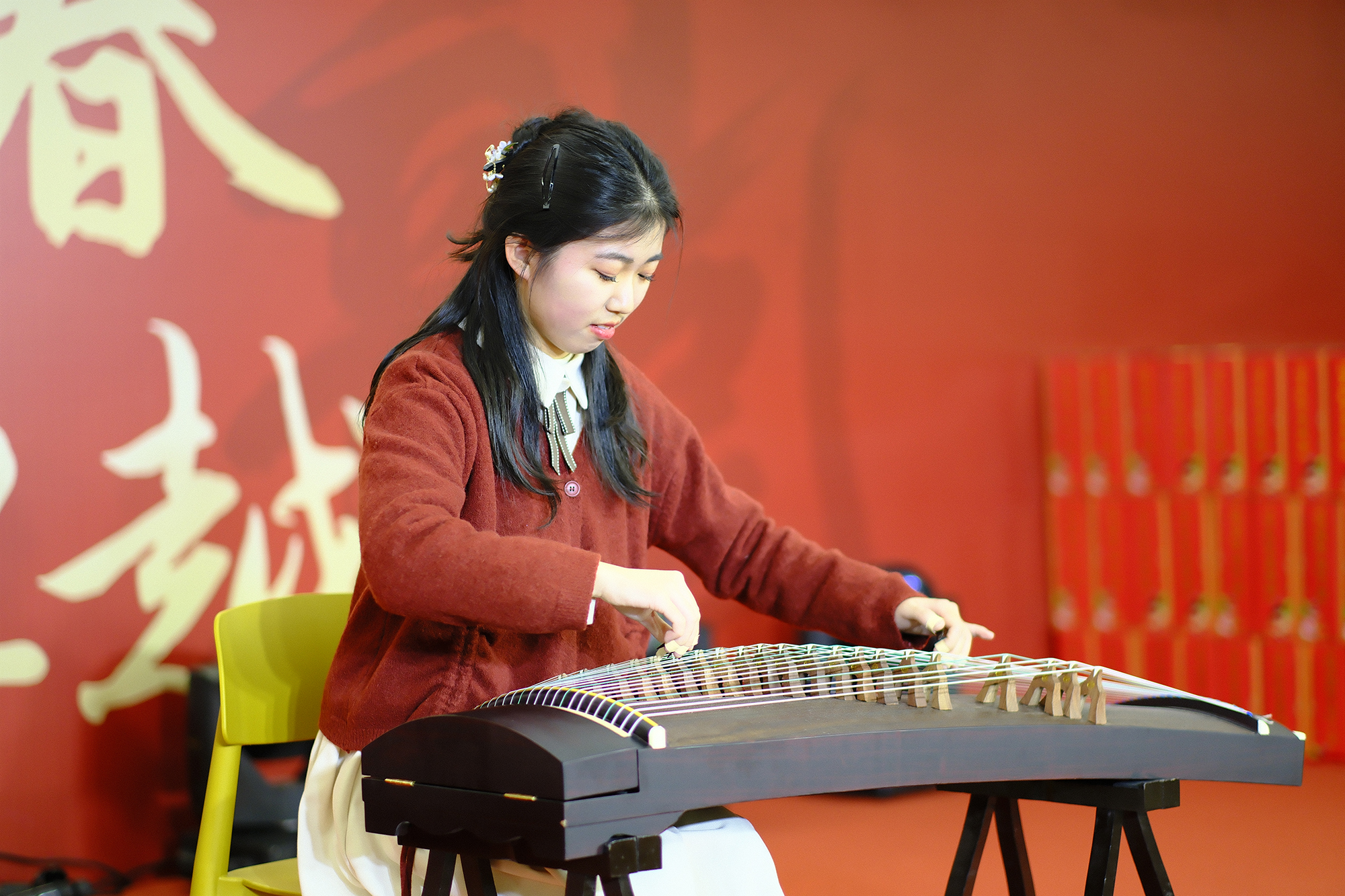 欢乐的民乐古筝独奏《丰收锣鼓》拉开了新春师生同乐会的大幕。校艺术团带来了声乐二重唱《蝴蝶飞呀》和民乐竹笛二重奏《浮光》,留校的维吾尔族同学带来了精彩的舞蹈《跳吧》,多才多艺的各组同学用优美的歌舞将吉祥好运带给大家。