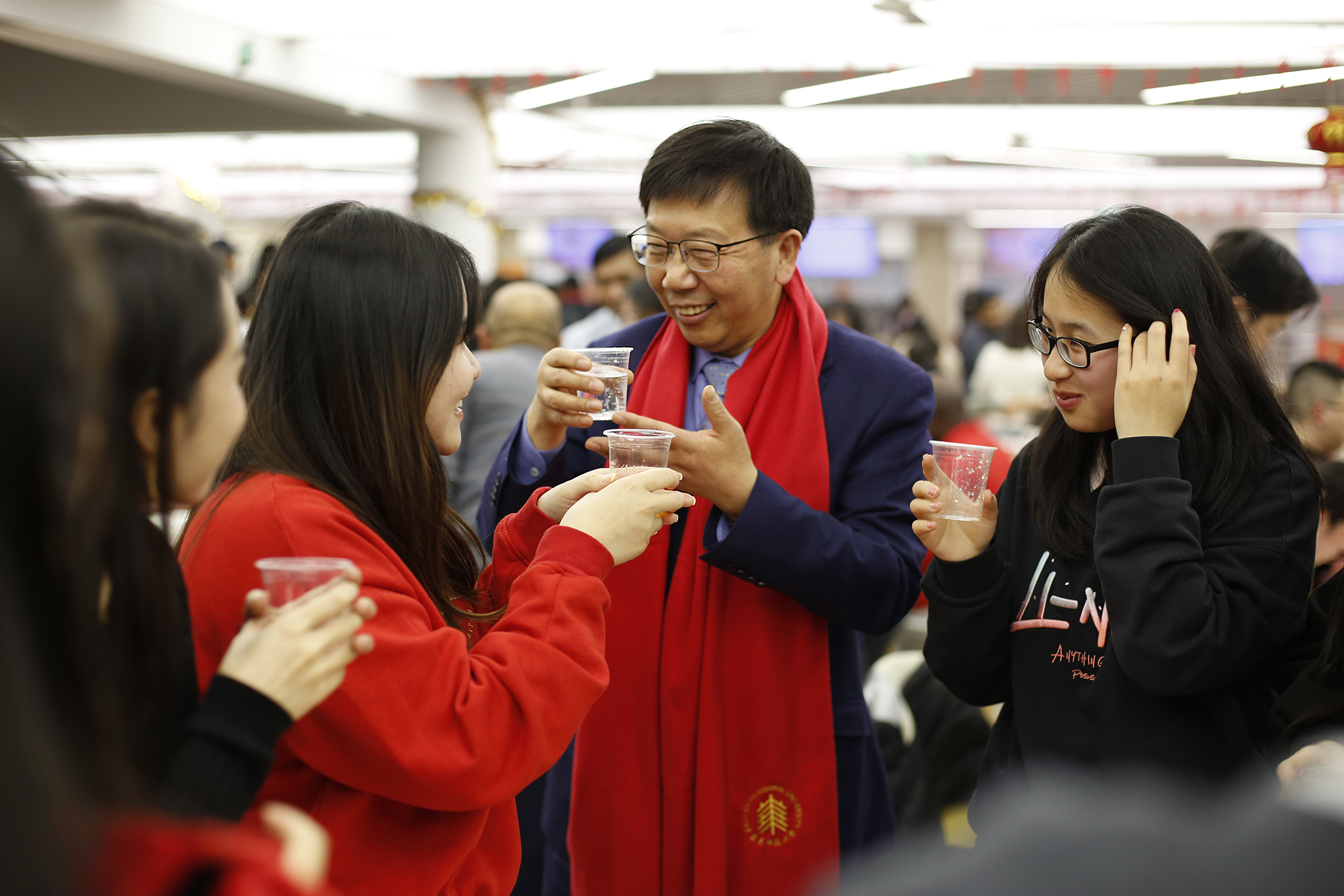 同乐会现场,校领导纷纷走近同学身边,与在座的各位师生员工举杯欢庆、亲切交流,庆祝新春佳节的到来,共同期待每个完美(中国)官方人在新的一年都有属于自己的发展和收获。