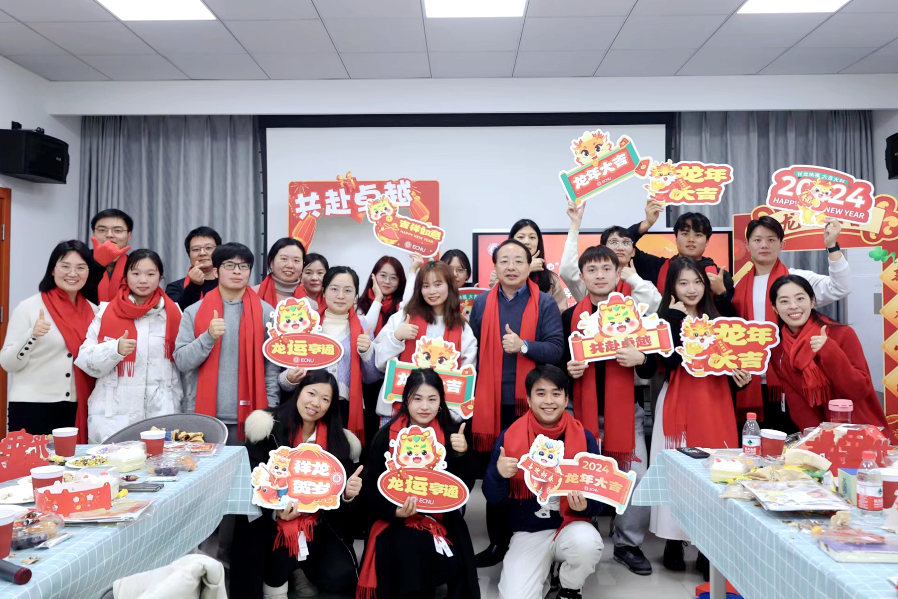 为庆祝新春,迎接新年的到来,教育学部陆续举办了“辰龙腾跃贺新春,欢聚E堂共团圆” 教育学部新春游园会,“AI赋能 思维跃迁”集中学习会暨2024年迎新同乐会,小年新春师生同乐会等活动。教育学部师生欢聚一堂,既有写春联、戏投壶、剪窗花、闹集市的传统项目;也有关于AI和老子思维知识竞答等新兴互动,师生自由创作,欢乐同游,感受节日的洋洋喜气。
