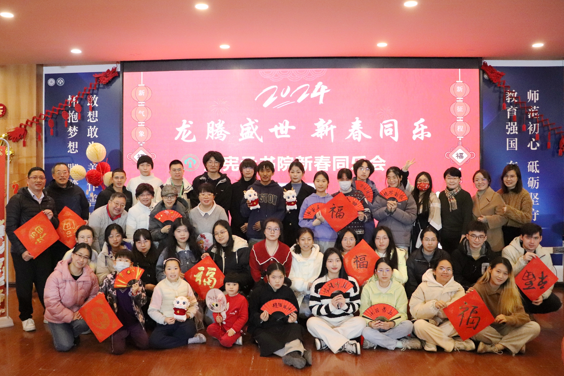为营造学生社区积极向上、温馨有爱的节日氛围,让留校学生感受到“年”的喜庆与“家”的温暖,孟宪承书院举行了“龙腾盛世 新春同乐”孟院留校师生新春同乐会。飞花令、猜字谜、写书法、包饺子......在精彩纷呈的传统文化和习俗体验中,师生们欢聚一堂,其乐融融,期盼美好,共赴卓越。老师们为留校学生送上问候与祝福,勉励同学们在新的一年坚守初心,奋发有为。