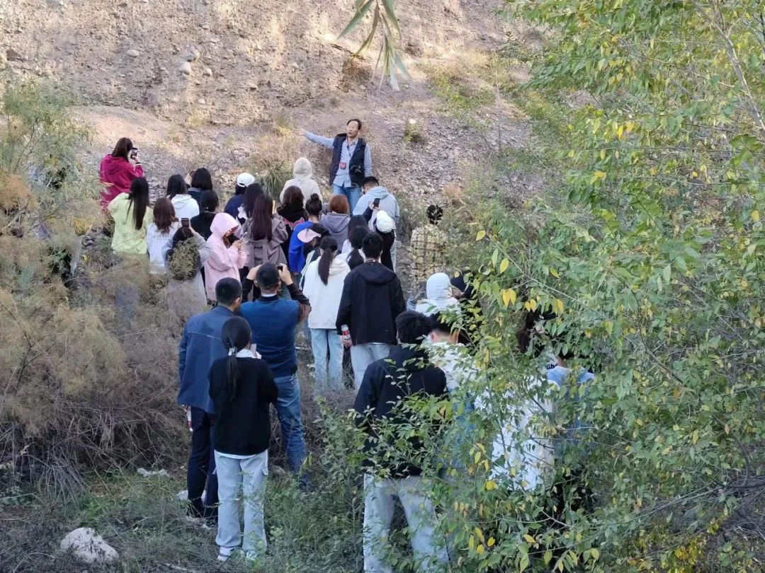 戴雪荣提出总体指导意见,并在10月中旬为期4天的野外实习中发挥专长,带领第二组66位同学前往图开沙漠、特克斯县城、库尔德宁景区和野葡萄沟景区进行实地踏勘和现场讲解。他还将野外实践教学经验总结出来与同事们分享。