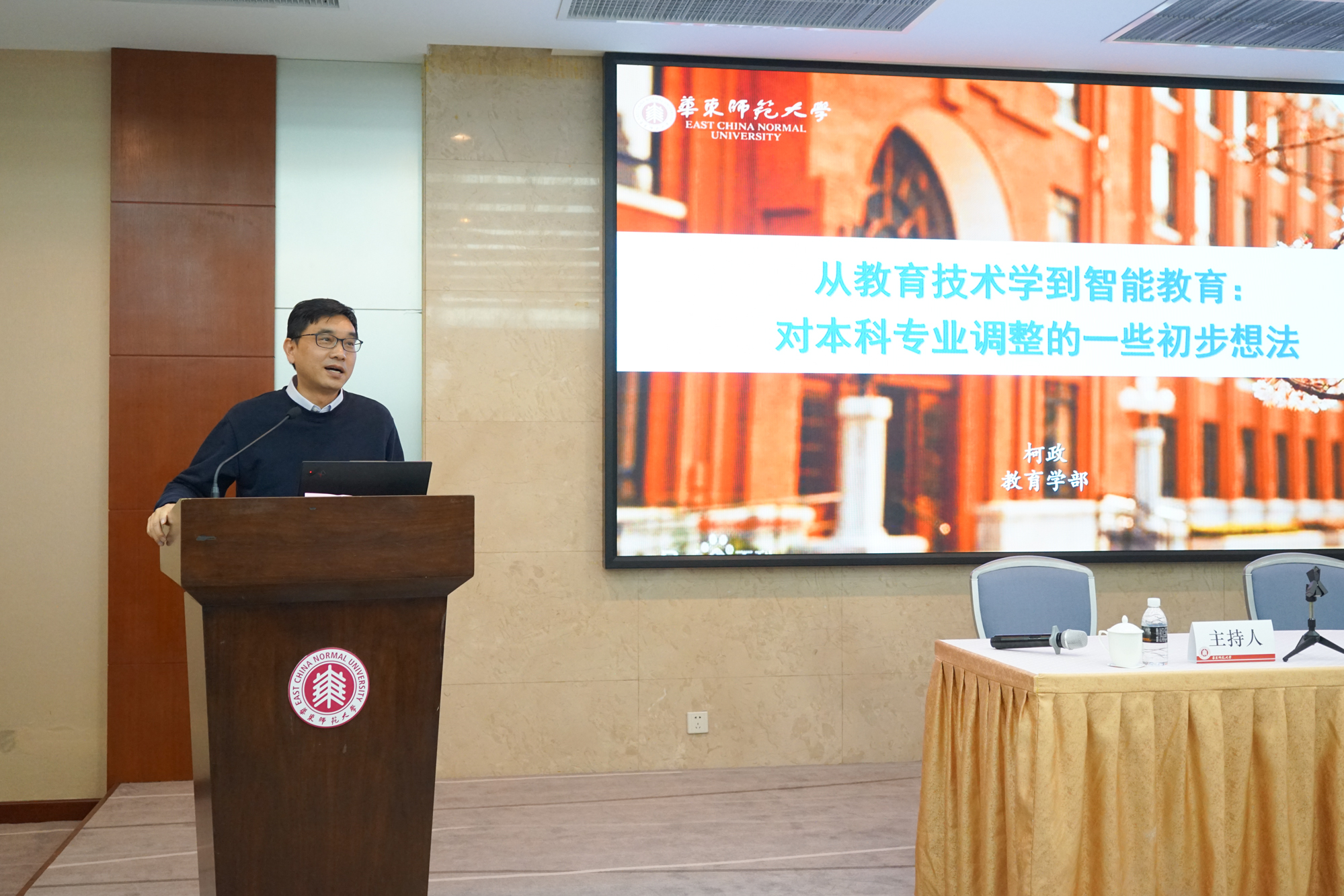 教育学部副主任柯政汇报了将教育技术学专业调整为智能教育专业的一些初步想法,一是设计以高质量就业导向的培养目标,培养顶尖科技企业、顶尖中学、顶尖研究生院所需学生;二是构建全新的课程结构和形态,课程要“硬”、课程的专业集约性要强;三是教学方式方法要符合智能社会特征,允许和鼓励学生使用人工智能技术来学习,加强工科思维和选择性;四是建立新型学术建制,推动科教产教融合、跨学科跨部门合作。