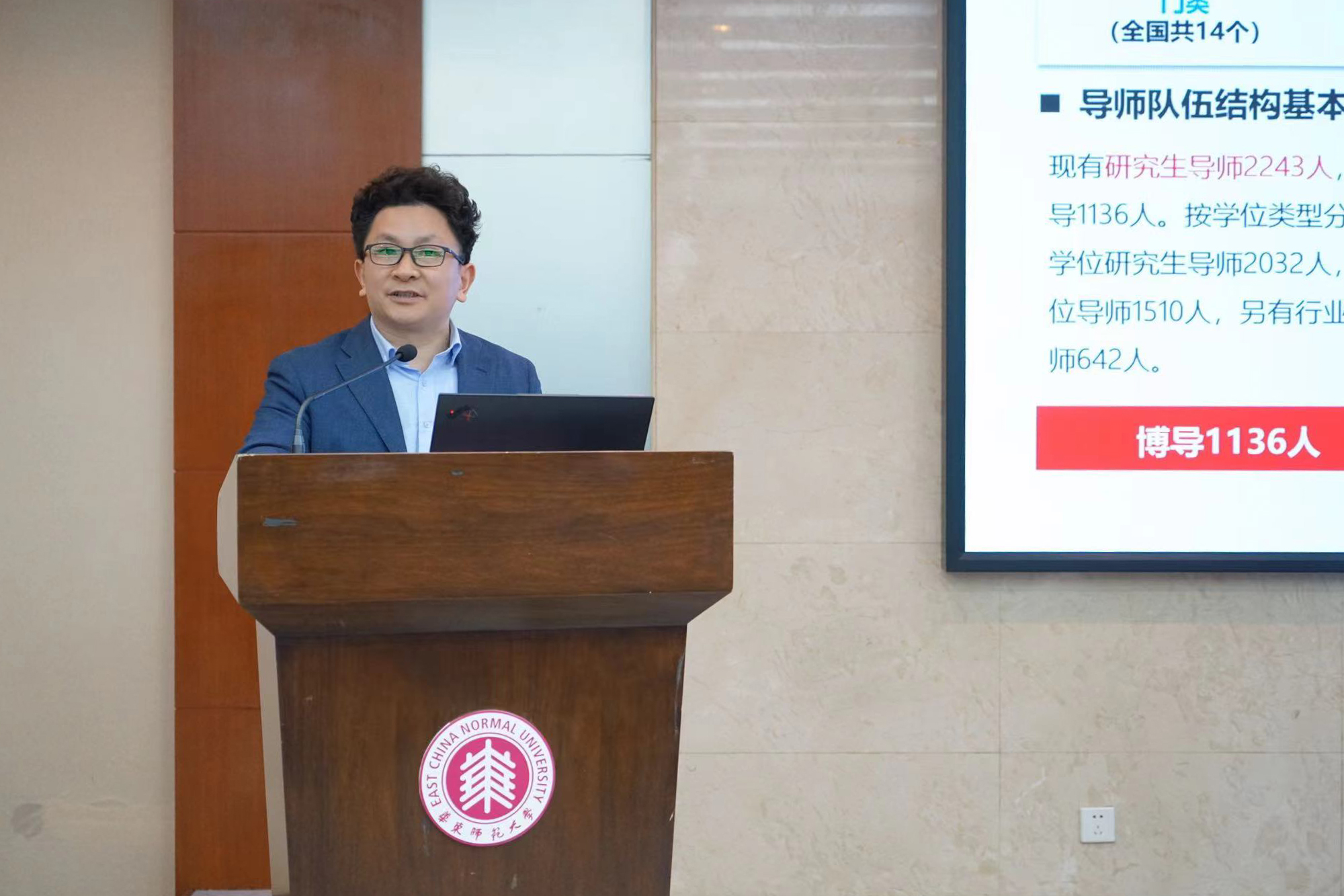 研究生院副院长杨福义围绕“推动研究生教育更高质量发展,培养造就高层次拔尖创新人才”,针对全面构建思政育人体系、推动育人模式转型升级、精耕拔尖人才培养实验田,优化调整学科专业布局四大方面给出了学校研究生教育的改革举措和思考。他表示,一要建立健全研究生工作责任体系:导师第一责任,院系主体责任,研究生院管理责任;二要打造高水平导师队伍,健全招生、培养和学位授予全过程、全链条质量管理;三要构建”规模结构协调发展,培养彰显特色,整体质量稳步提升,拔尖人才持续涌现”的卓越研究生教育体系;四要培养造就具有师大烙印的德才兼备的高层次拔尖创新人才,以更大作为服务教育强国建设。