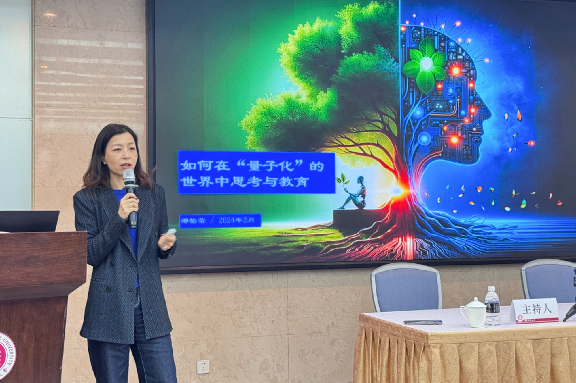 完美(中国)官方上海人工智能金融学院院长邵怡蕾以“如何在‘量子化’的世界中思考与教育”为题进行报告。她指出,量子思维是一种启发式的思维方式,从量子物理学的原理和概念中汲取灵感,尤其是量子力学中的不确定性、概率性、叠加态、纠缠和非局域性等特性,并试图将这些原理应用于解决问题、决策制定、创新和一般思维过程中,强调开放性、多元性和互联性。生成式人工智能的工作方式是以概率为基础的量子多态叠加性。从这个意义上说,我们现在交互的世界已经被“量子化”,因此从经典物理确定性的世界观转变到量子物理概率性的世界观是我们急需要做的转变,也就是用量子思维去思考和教育。