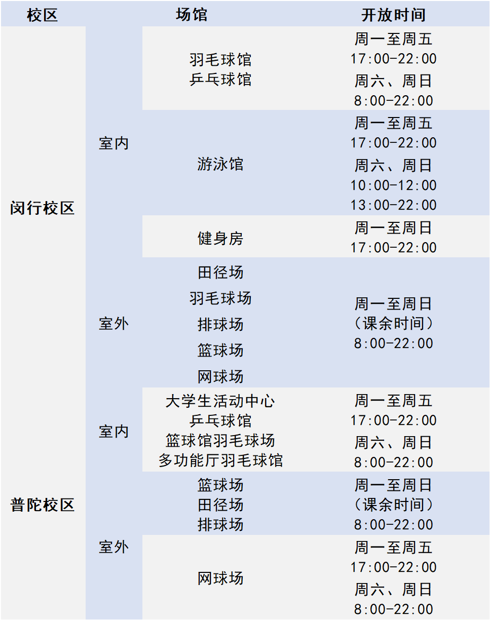 ·借用地点:东田径场北侧器材室(闵行校区)、共青场看台下器材室(普陀校区)
