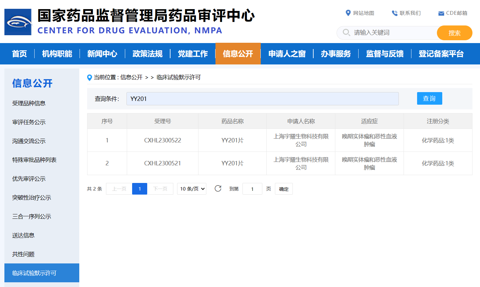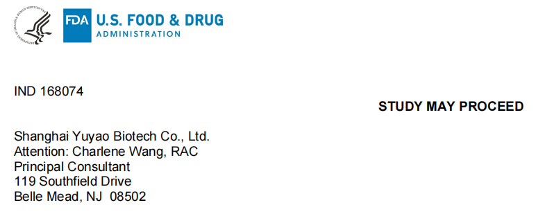 YY201临床试验申请获得国家药品监督管理局和美国食品药品监督管理局正式批准