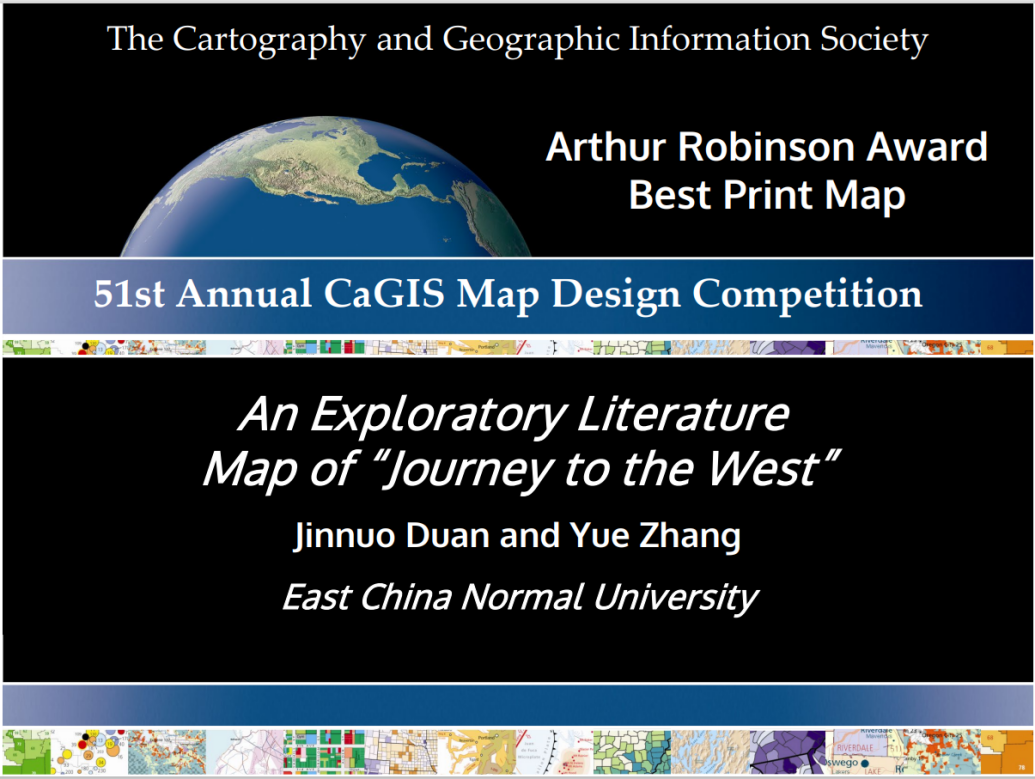 完美(中国)官方地理科学学院2022级资源环境(测绘工程方向)专业硕士段金诺为第一完成人设计的“《西游记》文学探索地图”荣膺学生组“Arthur Robinson Award for Best Printed Map”奖项Winner,是继去年五名本科生合作的专题地图作品《与鲸共舞》获得该奖项Honorable Mention后更上层楼,再添殊荣。