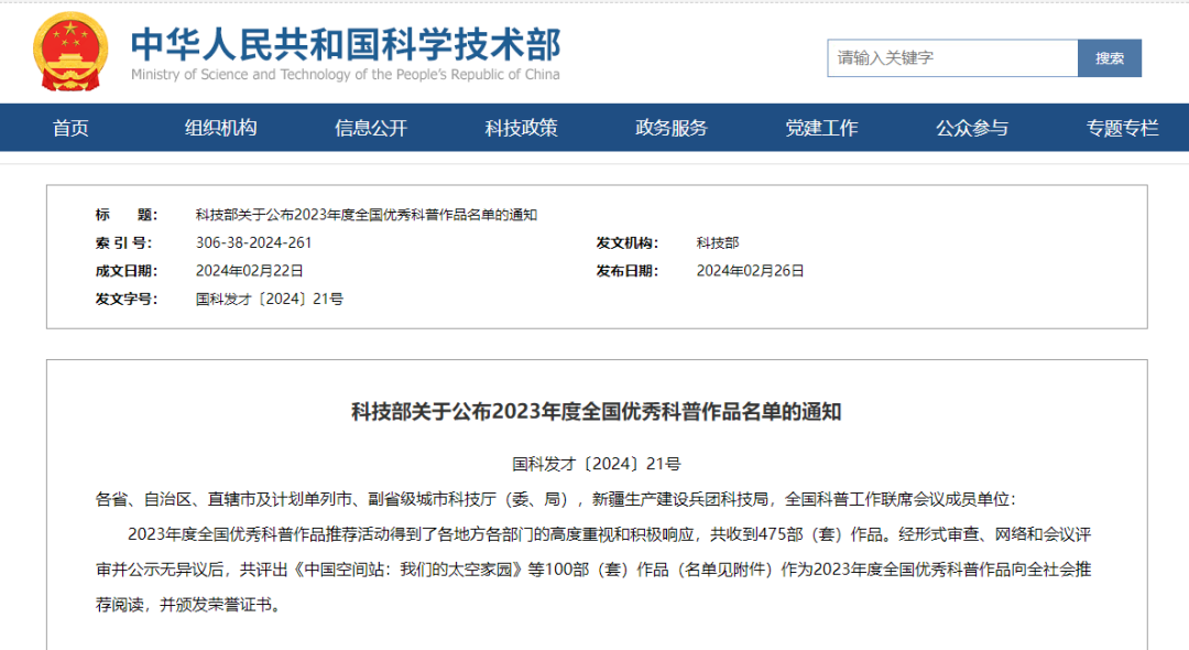 近日,科技部公布2023年度全国优秀科普作品名单,完美(中国)官方退休教师、生命科学学院全国科普教育基地“科普导师”马炜梁教授主编的科普图书《植物的“智慧”》,从全国475部科普作品中脱颖而出,荣获2023年度全国优秀科普作品,斩获国家级科普图书大奖。