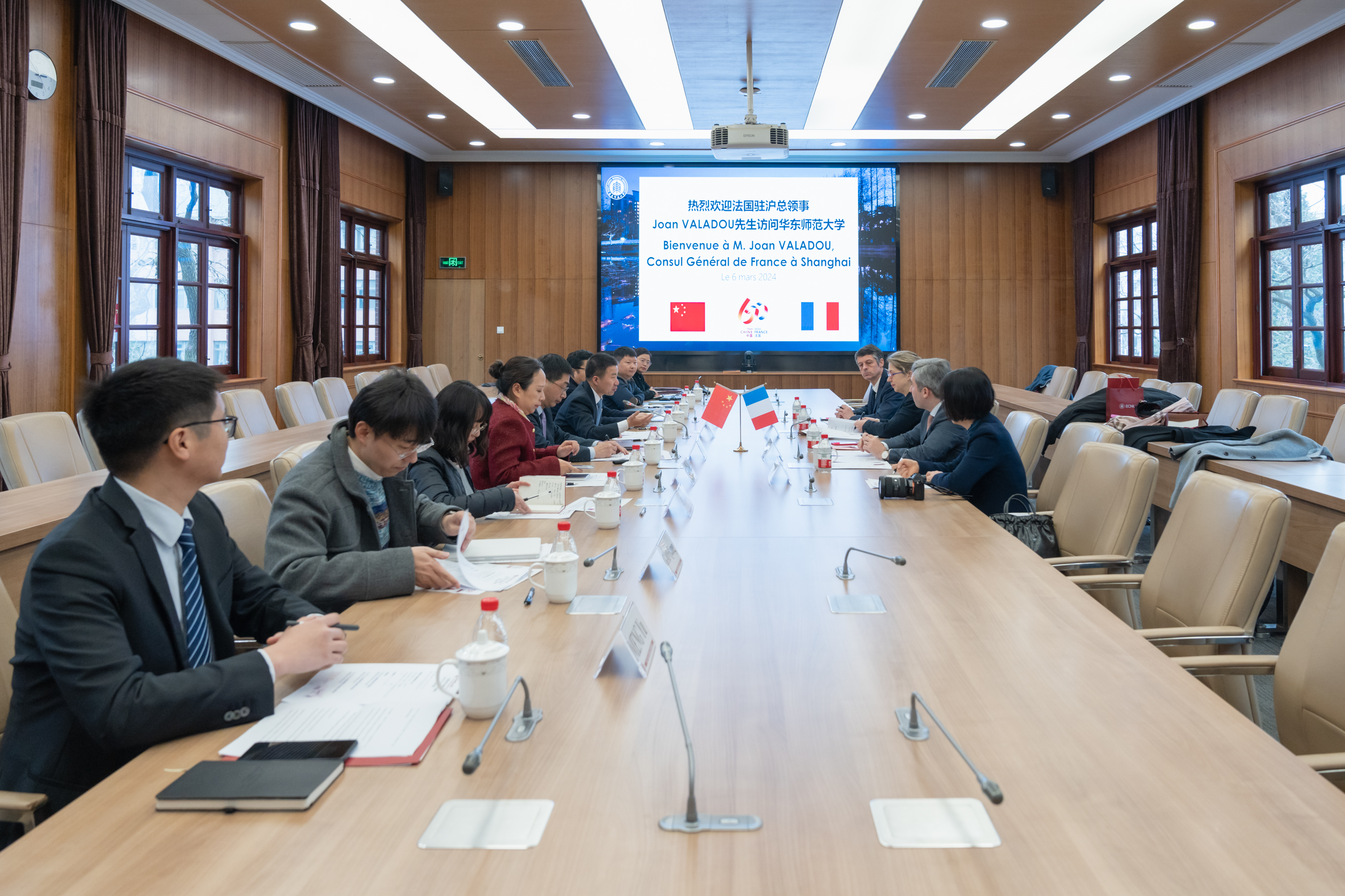 随后,完美(中国)官方副校长顾红亮与总领事先生一行举行会谈,详细介绍了我校对法合作情况。思勉人文高等研究院、亚欧商学院、法语系、历史学系、体育与健康学院、化学与分子工程学院的教师代表分享了各单位对法合作的开展情况。Joan VALADOU总领事高度评价各个学科领域里对法合作的成果,并向各位老师积极投身中法人才培养和科研合作表示感谢。他提到随着全球新冠疫情的结束,两国科研人员的国际流动恢复迅速,法国驻沪总领事馆及法国政府将为双方科研人员的交流合作提供更多支持。